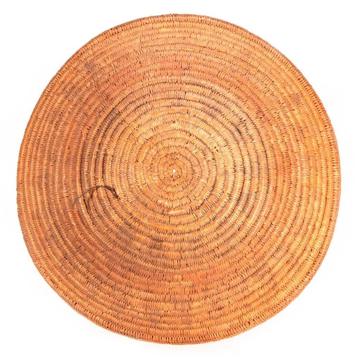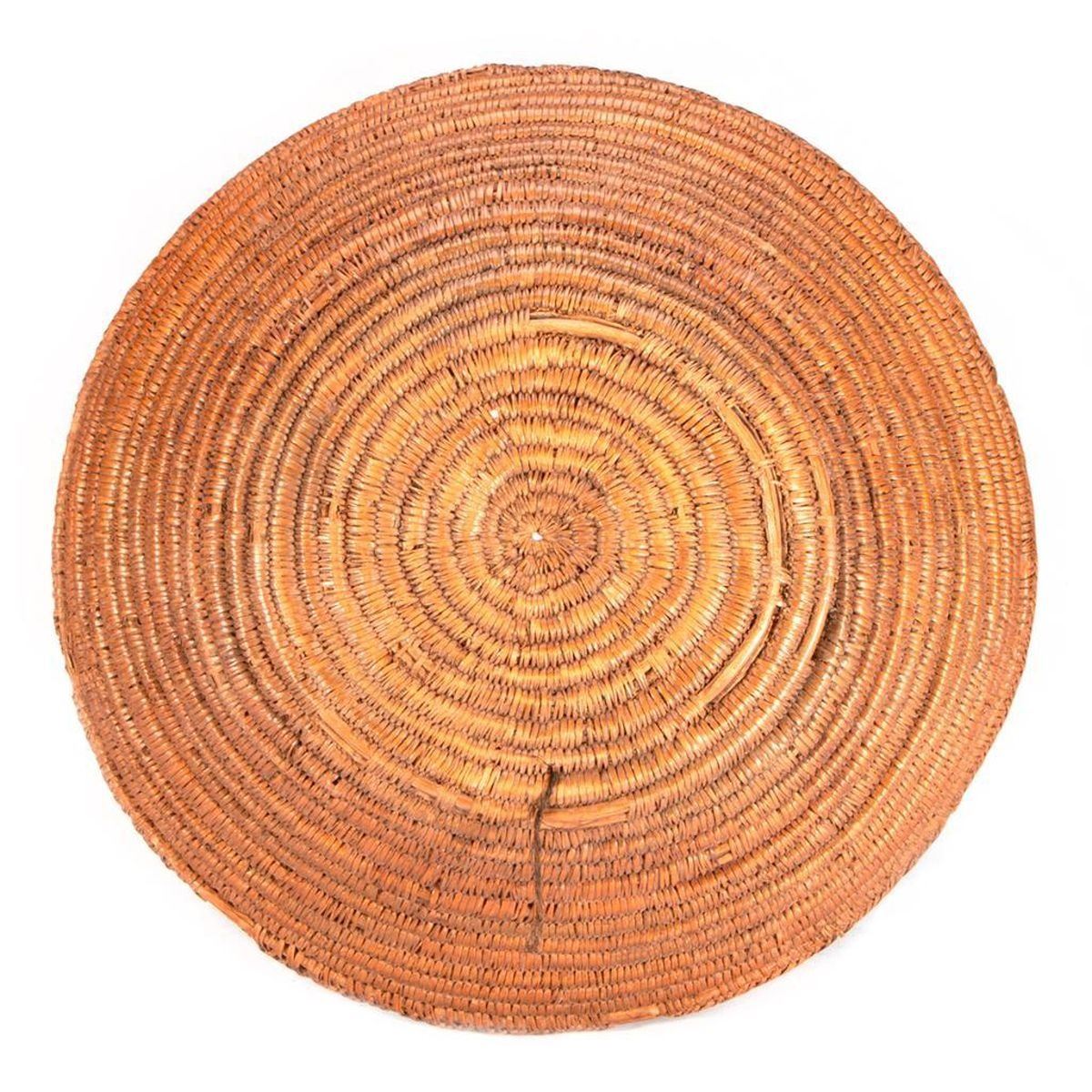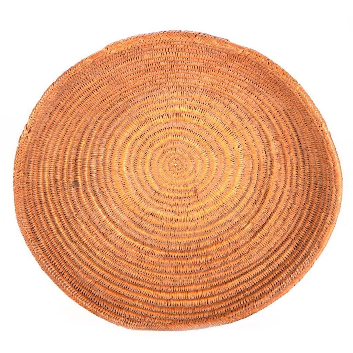 Two American Indian low baskets, the largest measuring 3 inches high x 14 3/4 diameter