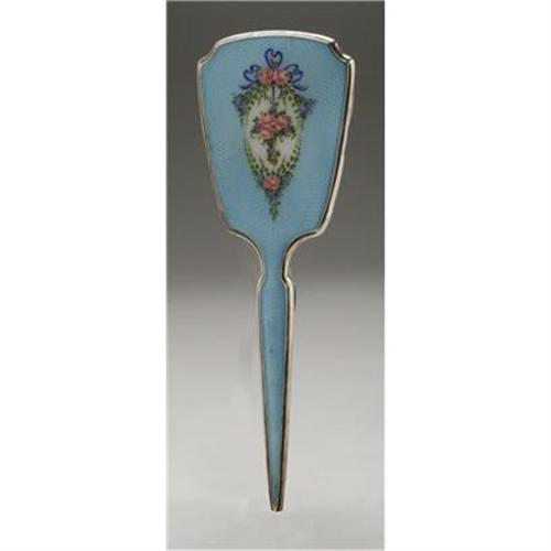 Two American Sterling & Enamel Brushes & Mirror Two American Silver And Enamel Brushes And Mirror Ba