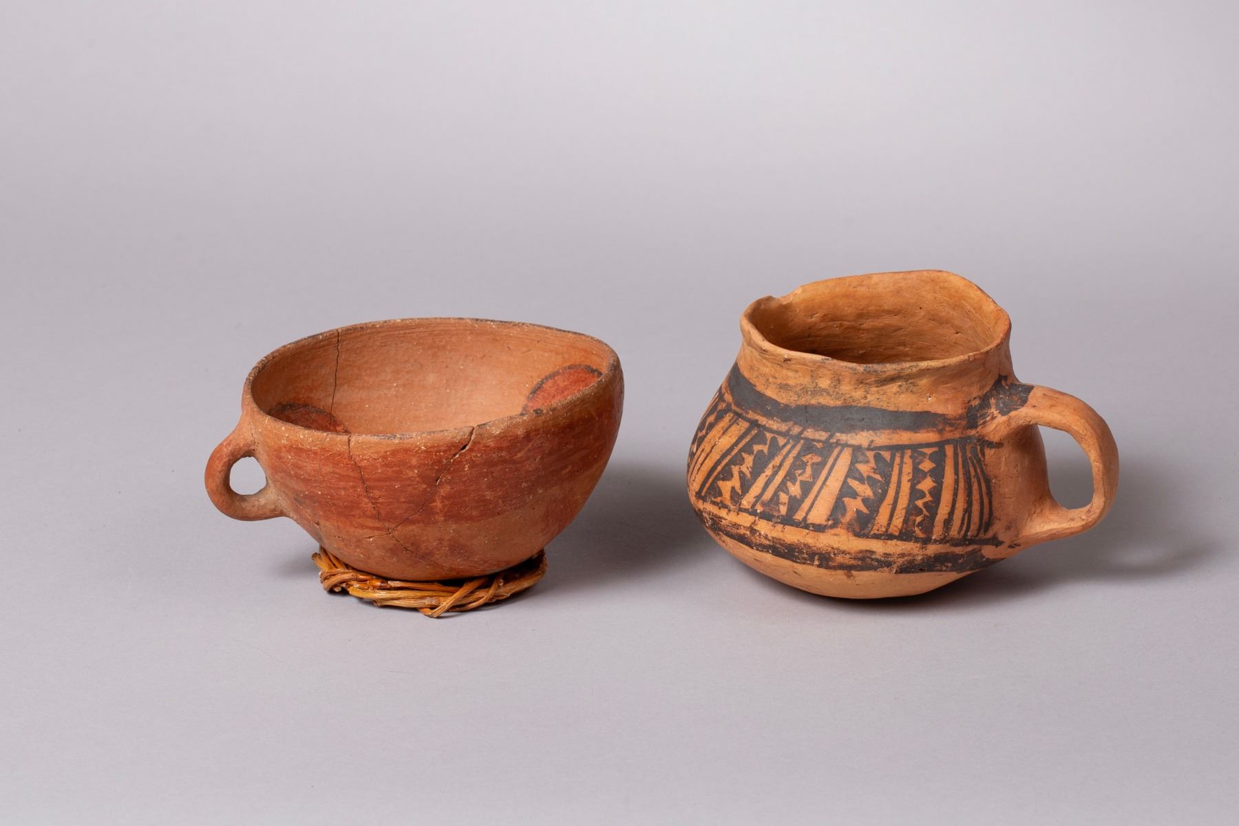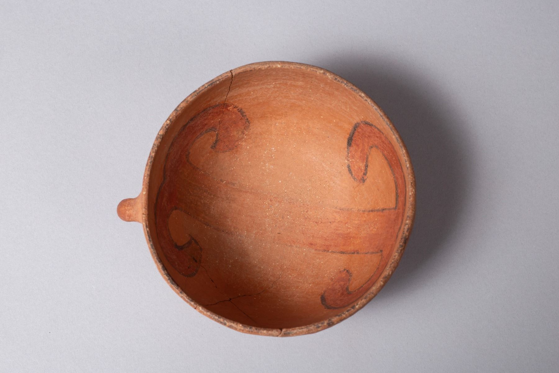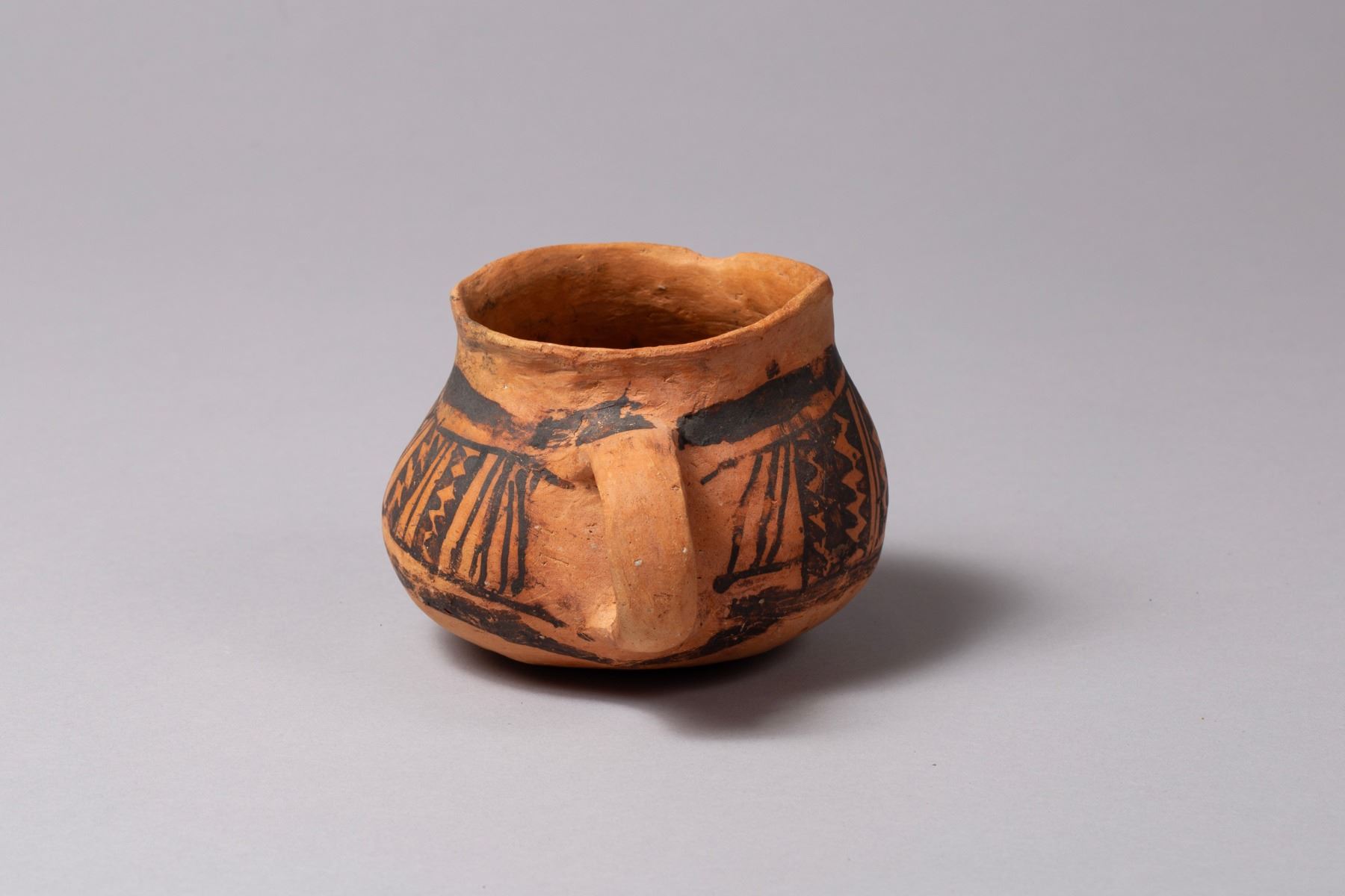 A) Citadel polychrome cup - red with red and black designs inside, small handle