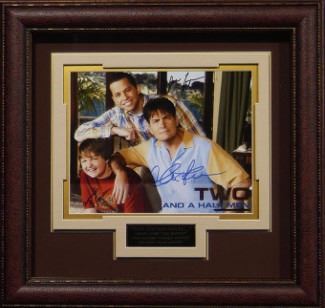 Two and a Half Men is an American television sitcom that began broadcast on CBS on September 22, 2003. Starring Charlie Sheen, Jon Cryer, and Angus T. Jones, the show was about a hedonistic jingle writer, Charlie Harper; his uptight brother, Alan; and Alan's growing son, Jake. After Alan divorces, he moves with his son to share Charlie's beach-front Malibu house and complicate Charlie's free-wheeling life. In 2010, CBS and Warner Bros. Television reached a multi-year broadcast agreement for the series, renewing it through at least the 2011–12 season. But, on February 24, 2011, CBS and Warner Bros. decided to end production for the rest of the eighth season after Sheen entered drug rehabilitation and made "disparaging comments" about the show's creator and executive producer Chuck Lorre. Sheen's contract was terminated on March 7.This is a signed 11x14 Photo with museum Quality Leather Framing as shown. Charlie Sheen, Jon Cryer & Angus T. Jones have signed this photo. The perfect addition to complement any Home Theater Collection. Witnessed, Examined, and Certified Authentic (Lifetime) by Millionaire Gallery, Inc.