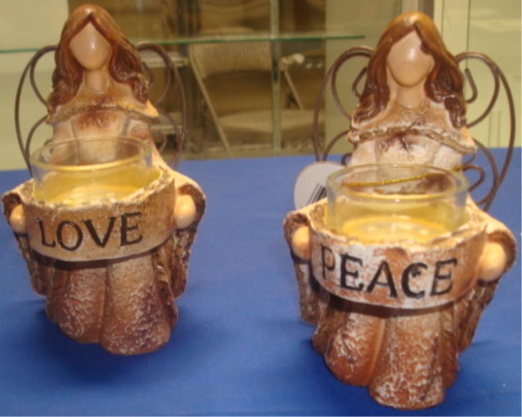 Two Angel Candle Holders: Love and Peace