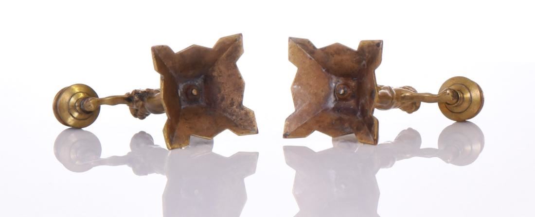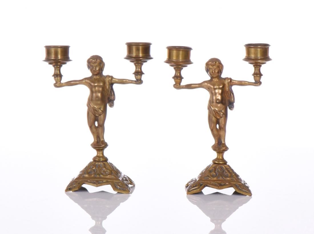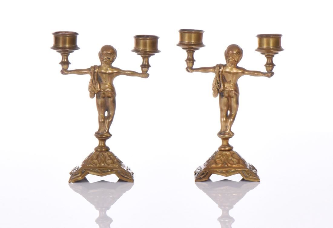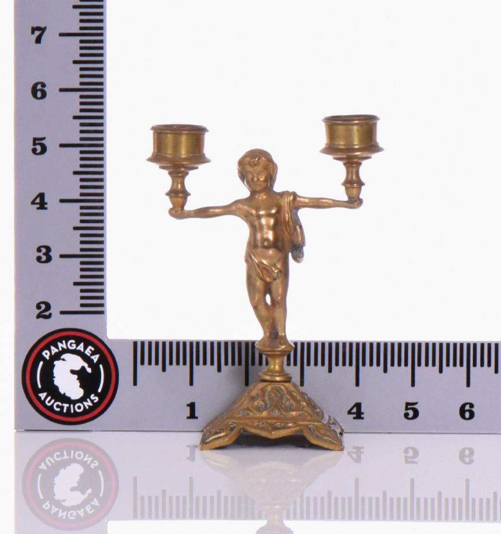 Two Antique Bronze Candlestick Candle Holders In The Form Of a Young Gladiator. Provenance: Palm Beach Estate Estimated more than 200 yrs old. Italian art dates back to the Ancient Romans who left remains in Italy of extraordinary richness. Italian painting began to develop beyond the influence of Byzantium in the Duecento or 13th century, maintaining its lead throughout the Italian Renaissance, and reaching a particular peak in the High Renaissance of Leonardo da Vinci, Michelangelo and Raphael. Italy retained its artistic dominance into the 17th century with Mannerism and the Baroque. In the 18th century Neoclassicism originated in Rome, but this was the last such Italian-born style that spread to all Western art. However, Italy maintained a presence in the international art scene from the mid 19th century onwards. Italian art has influenced several major movements throughout the centuries and has produced several great artists, including painters, architects and sculptors. (Wikipedia) Size: See Ruler Photo. (Photos Represent The Condition Of The Lot.)