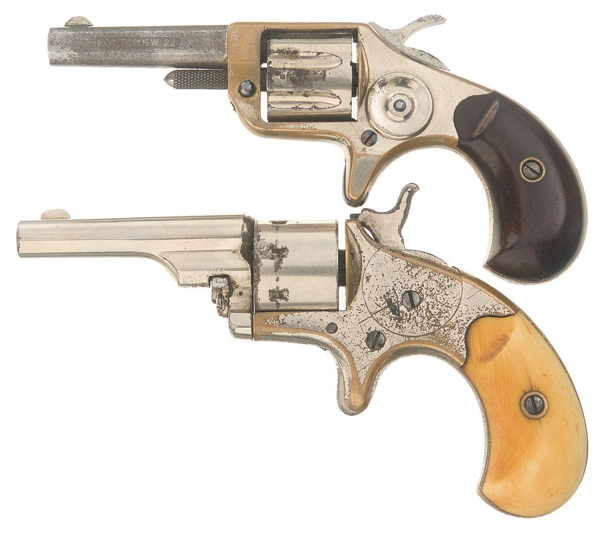 A) Produced in 1876. Two line address and etched panel on barrel, niter blue small parts and smooth bird's head grips.