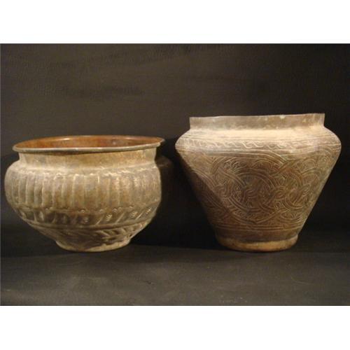 <tr><td>Title:Two Antique Copper Ornate Islamic Pots</td></tr>