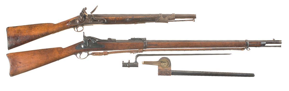 B) Standard lock markings with Model 1873 markings on breechblock, "29" stamped on freshened stock behind upper tang, Buffington rear sight, leather sling. With U.S. bayonet with scabbard, "25" stamped on leather hanger (very good).