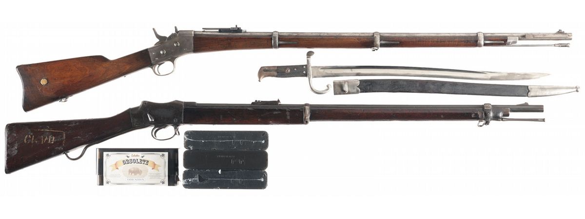 Manufactured in 1887. With 4 boxes of Cabela's Obsolete ammunition (80/80).