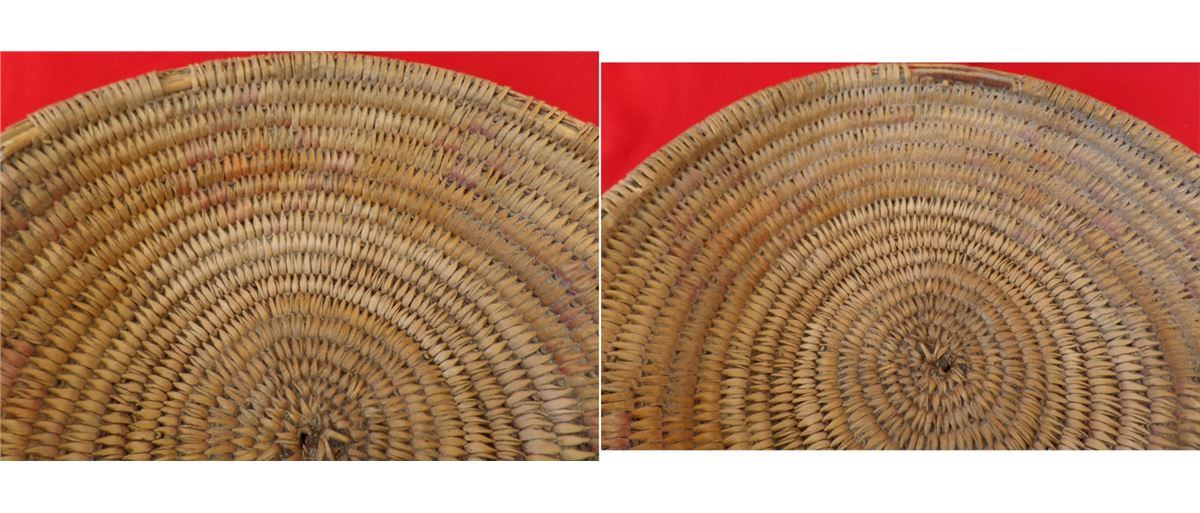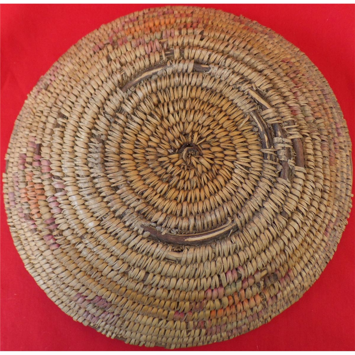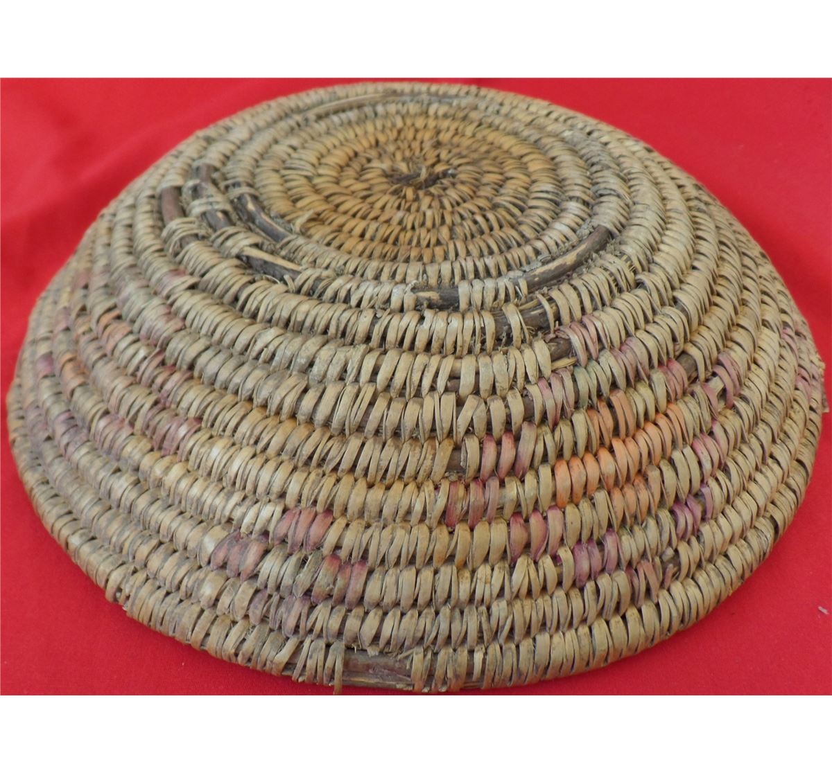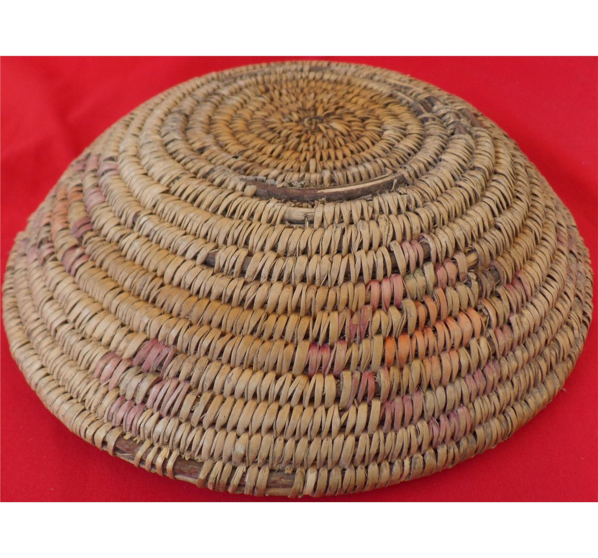 Two Apache Baskets, New Mexico measuring the small one 5 inches and the larger one 10 inches. They were found in cave in New Mexico and date from the 1900 to 1930's. They are made from willow and devils claw. The larger basket has some fading and stitch loss, the smaller one is in good condition. Shipping $20.00
