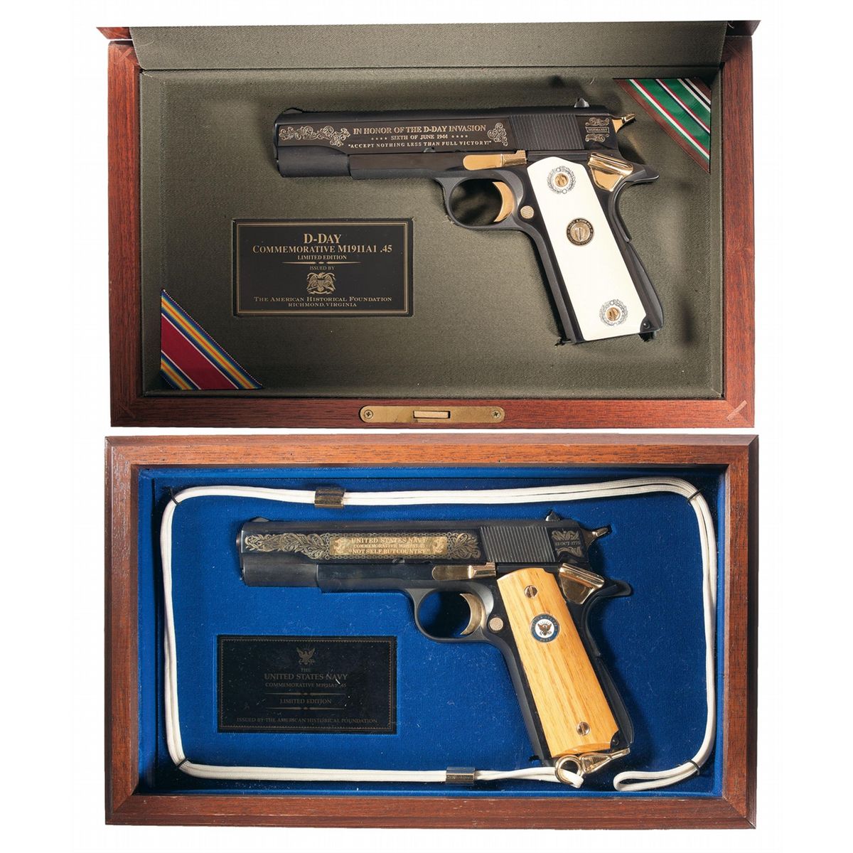- B) Standard commemortive markings and features with display case and a framed Certificate of Authenticity indicating this pistol is one of only 1,911 issued worldwide.