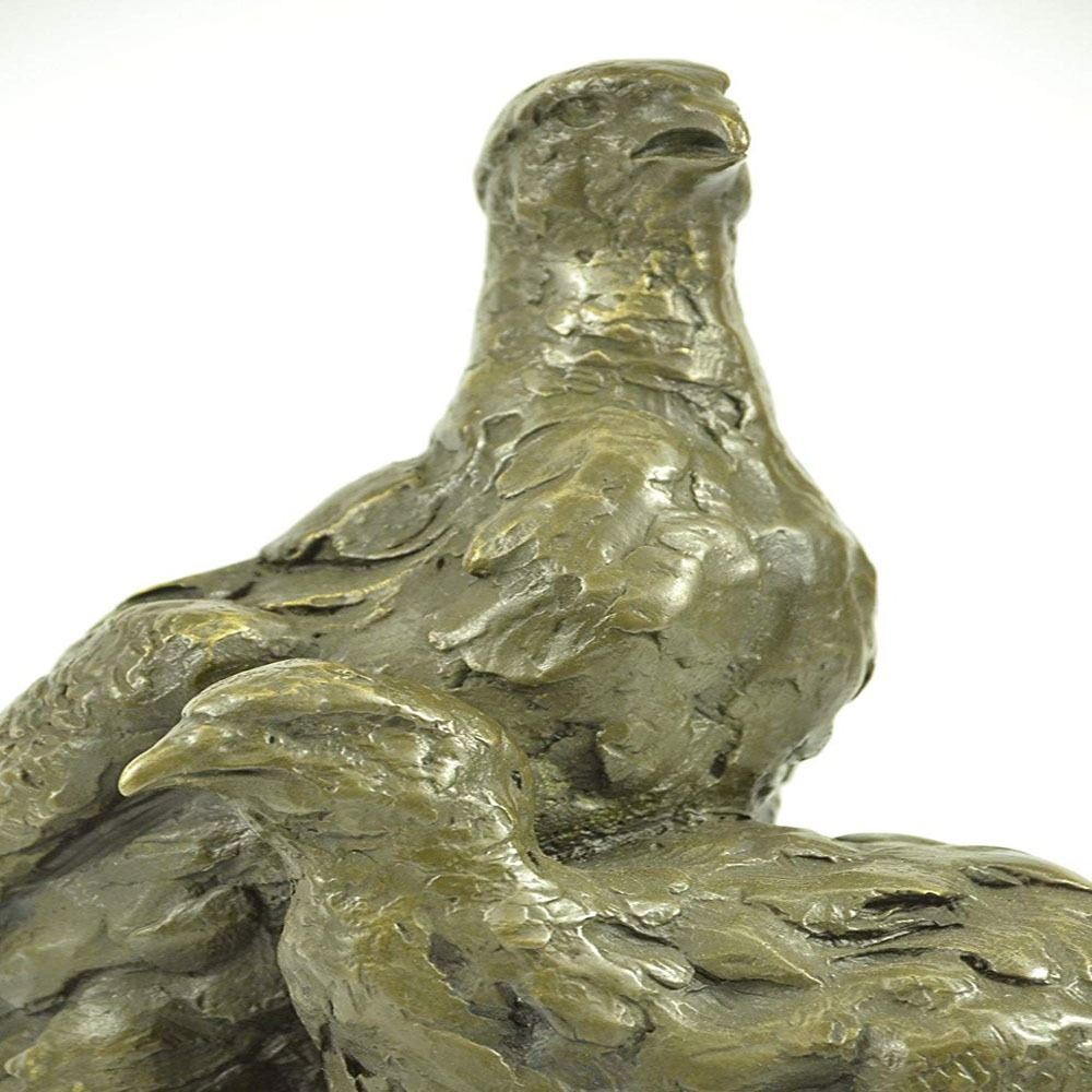 Bolting out of the glowing sunrise, two baby eagles cuddle with one another and collide in a whirling mass of feathers, talons and winged fury! Now, share the thrill of natures drama with this breathtaking eagle Sculpture bringing acclaimed artist B.C Zheng magnificent eagle imagery to life. This Bronze Sculpture is a masterful and fine detailed execution cast using the lost wax method. Bronze Dimensions with Marble Base: Height 12 X Width 11 inches. Weight: 12 LBS.