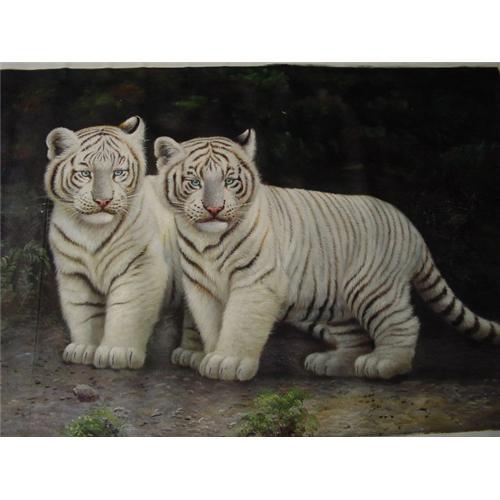 Two Baby White Tigers, Mint. Original painting done by Zhoukai, a member of the artist association of china. measurements are 36 x 24 1/2.