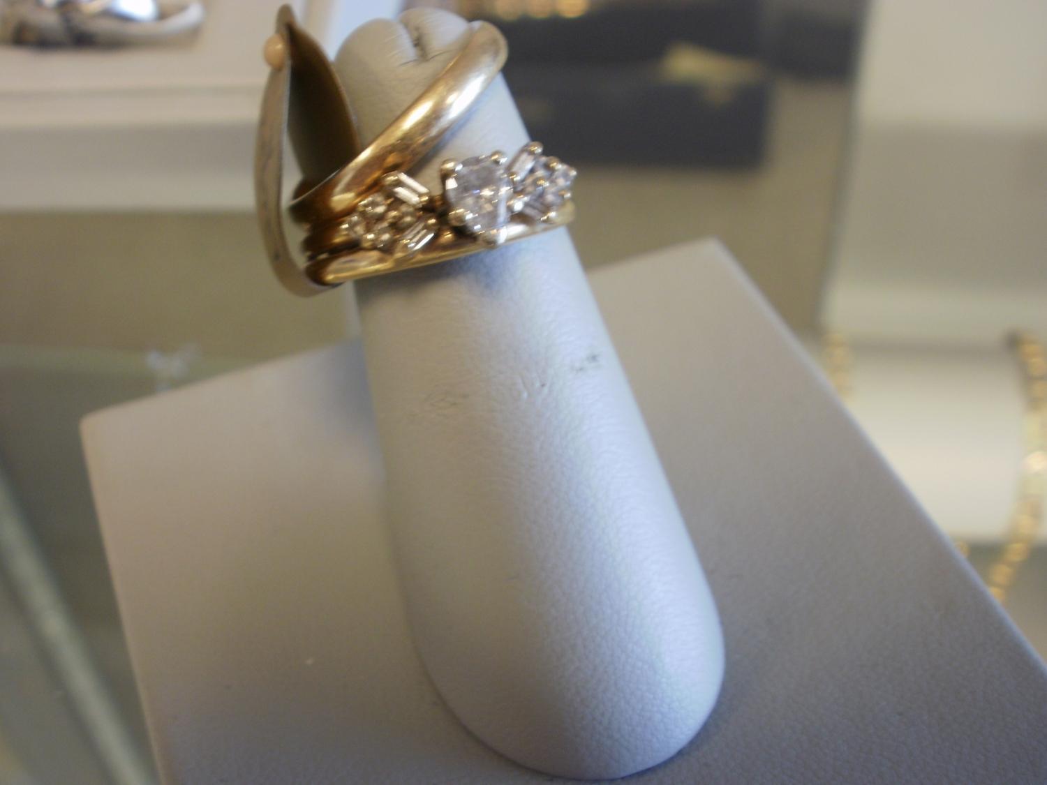 Two Band 14K Gold Ladies Ring with 1CT Pear-Shaped Diamond Center
