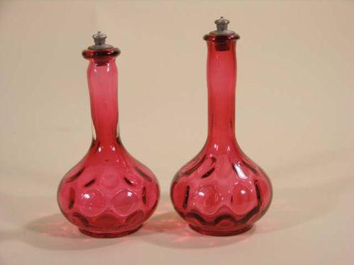 Two thumbprint design barber bottles, cranberry.