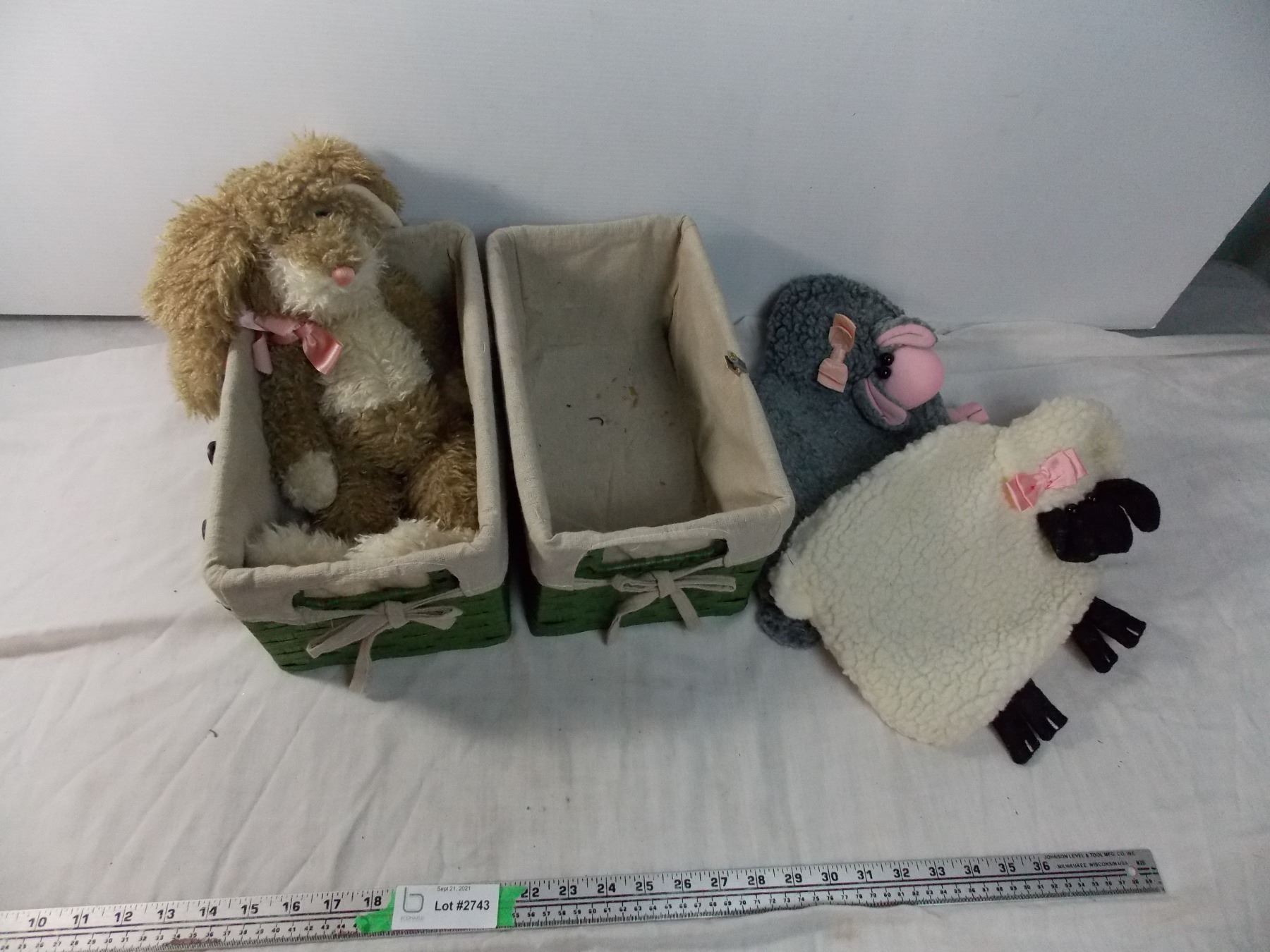 Two Baskets with Two Hot Water Bottles + Beanie Bunny
