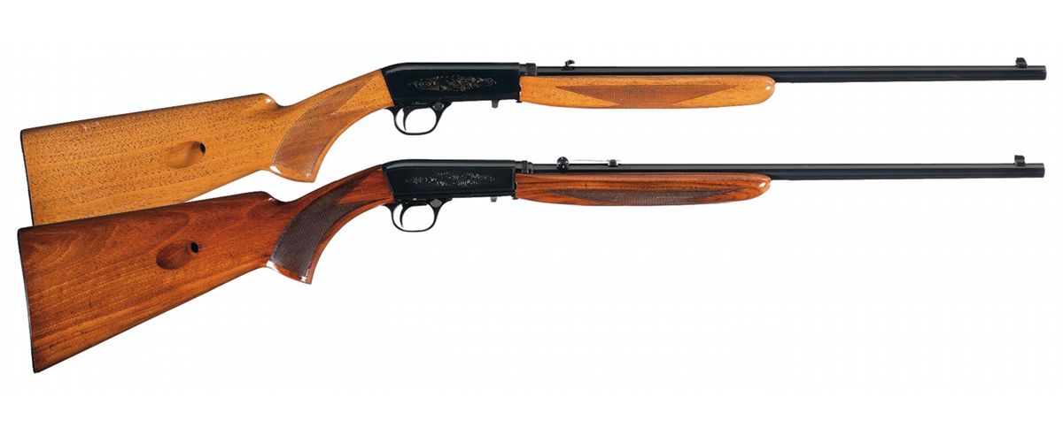 - B) Manufactured between 1956 and 1960. This rifle has a fixed front sight and the early wheel rear sight. Mounted on a multi-point checkered walnut forearm and pistol grip stock with steel buttplate. The buttstock magazine tube plate is numbered T55389.