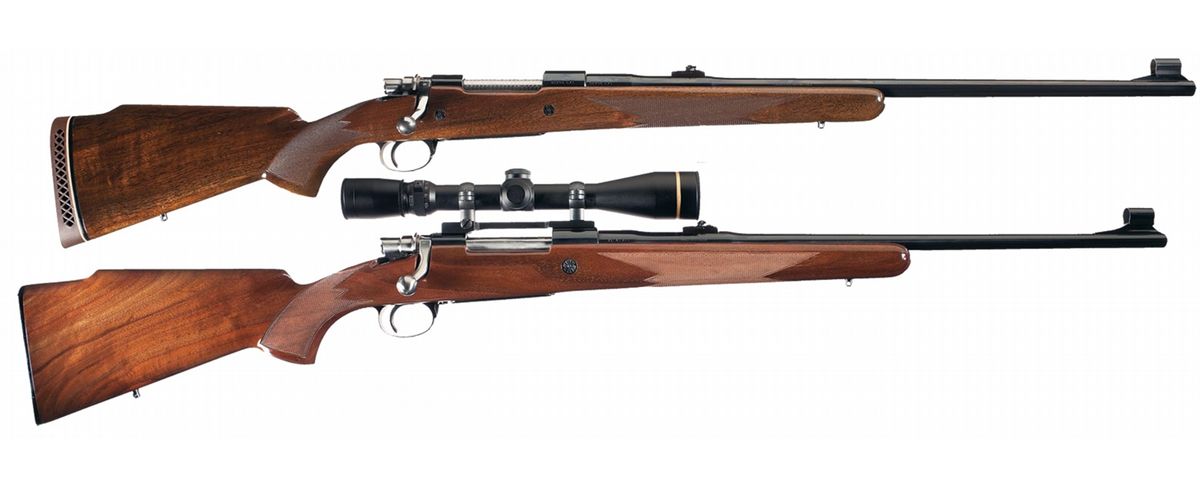 - B) This rifle was manufactured in Belgium in 1967 with a hooded ramp front sight and a flip up rear sight. The floor plate and trigger guard have some gold filled engraving. The receiver has a one-piece scope mount, scope rings and a Leupold Vari-X-III 4.5-14x40mm scope with screw on aluminum lens covers. Mounted on a multi-point checkered pistol grip stock with a raised cheekpiece, sling studs and a plastic buttplate.