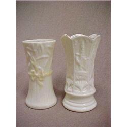 Two pieces of Belleek including: 3-3/4" Typha Spill (chip on rim), 6th mark; and 4-1/4" Belleek Spill, 8th mark