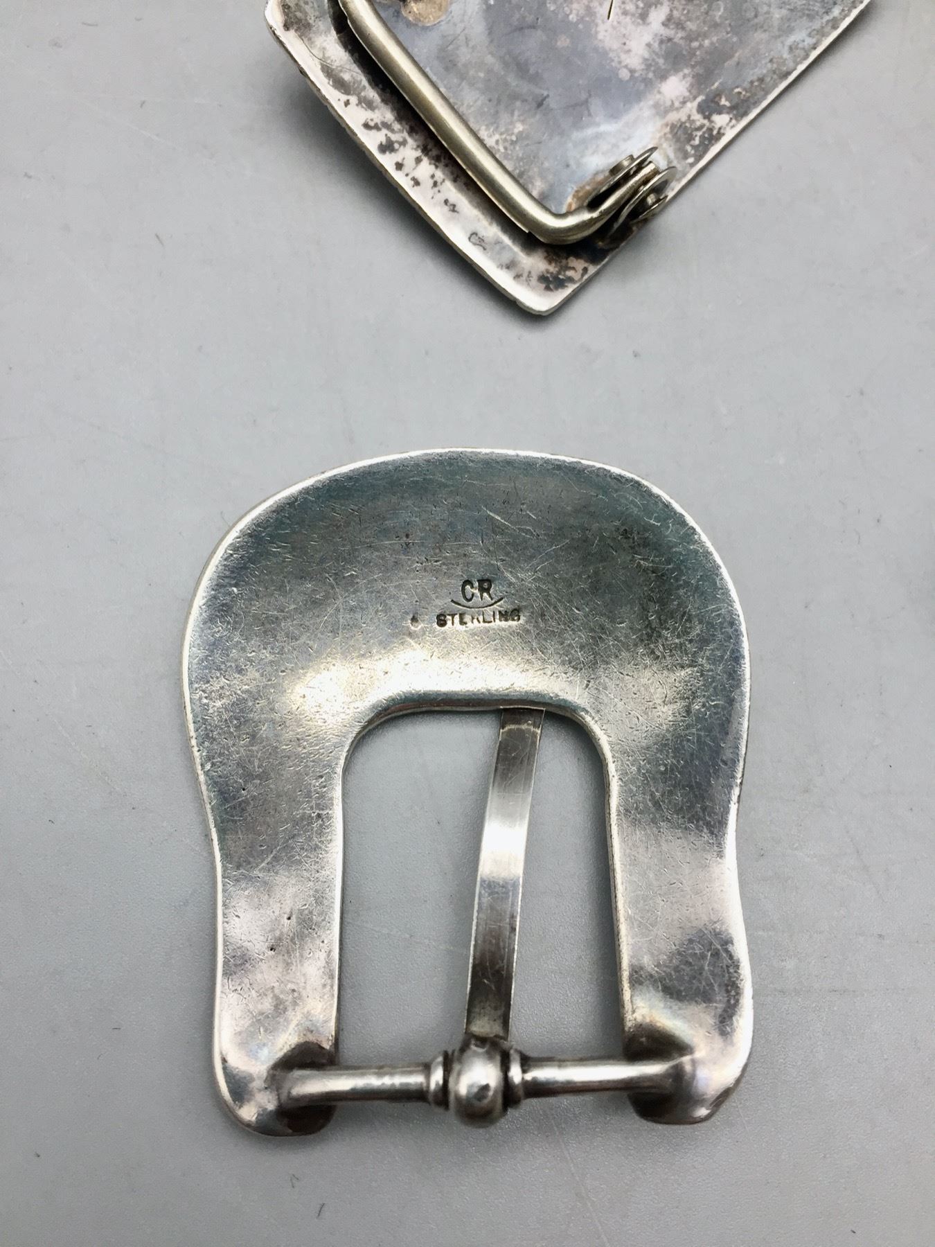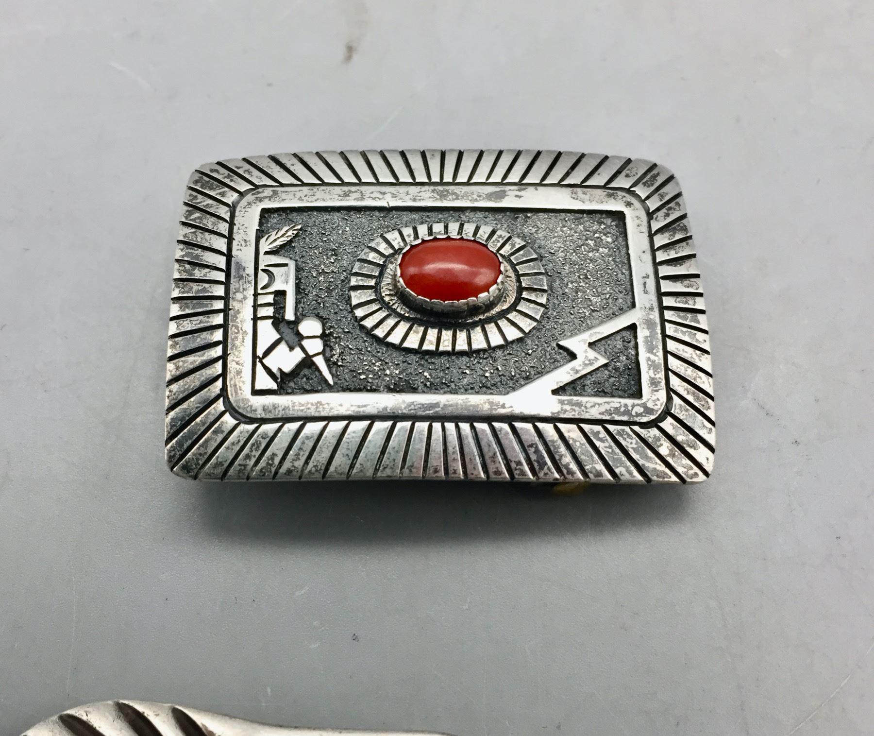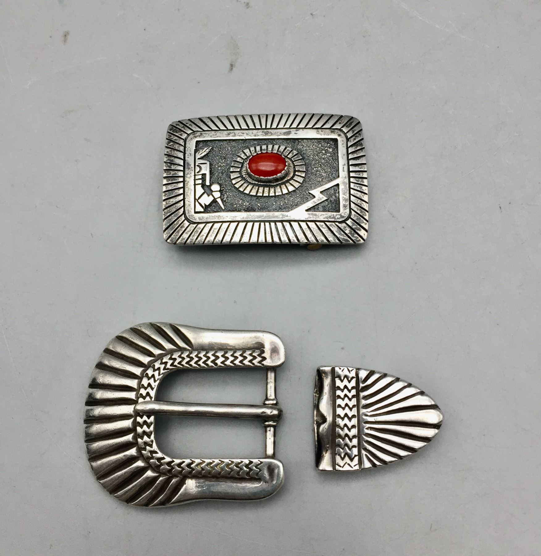 Description: Presented for sale in this lot are two nice little sterling silver belt buckles. One is a ranger style with a matching tip and the other is the traditional rectangular style with a coral cabochon set on it. Maker: Both are hallmarked with initials and stamped as sterling. Approx. Age: Contemporary. Size: Various. Combined 50.7 grams. Condition: Good for their ages, minor wear expected. Please look closely at the pictures - they are an important part of our description. Shipping: There will be a $5 handling, packaging fee for shipping this lot. The actual cost of postage will be added on top of that.