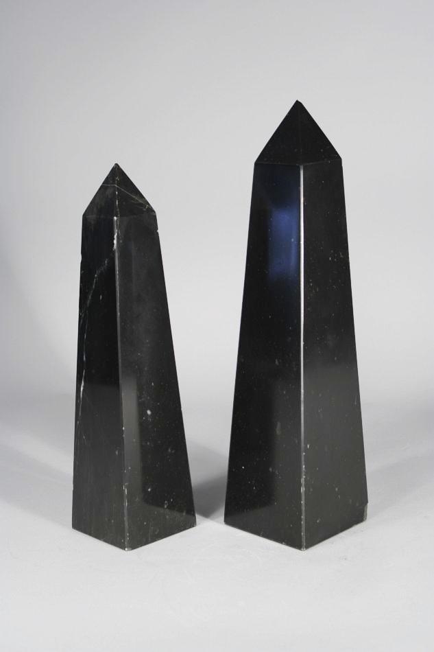 Two Black Onyx Marble Obelisks.