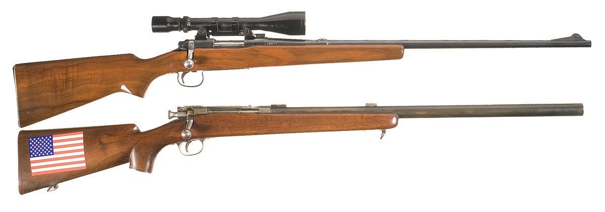 A) Made circa 1948-1962. Ramp bead front sight, rear sight block, standard markings, Bausch & Lomb 2.5-8x scope with adjustable mounts, smooth pistol grip stock and serrated metal buttplate.
