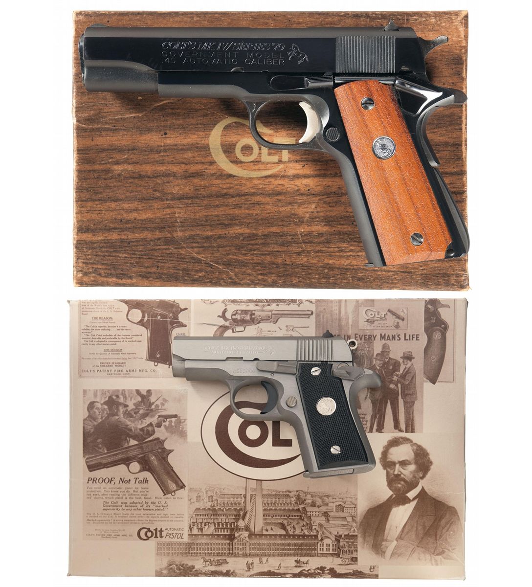 - B) Compact pistol manufactured circa 1995. With blue plastic Colt case and picture sleeve box numbered to gun.
