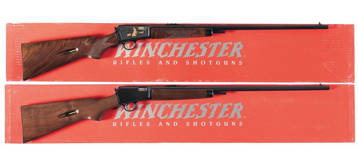 - B) Manufactured in Japan. Features blade front and semi-buckhorn rear sights, standard barrel and frame markings, and smooth pistol grip stock. Complete with original red Winchester box numbered to gun.
