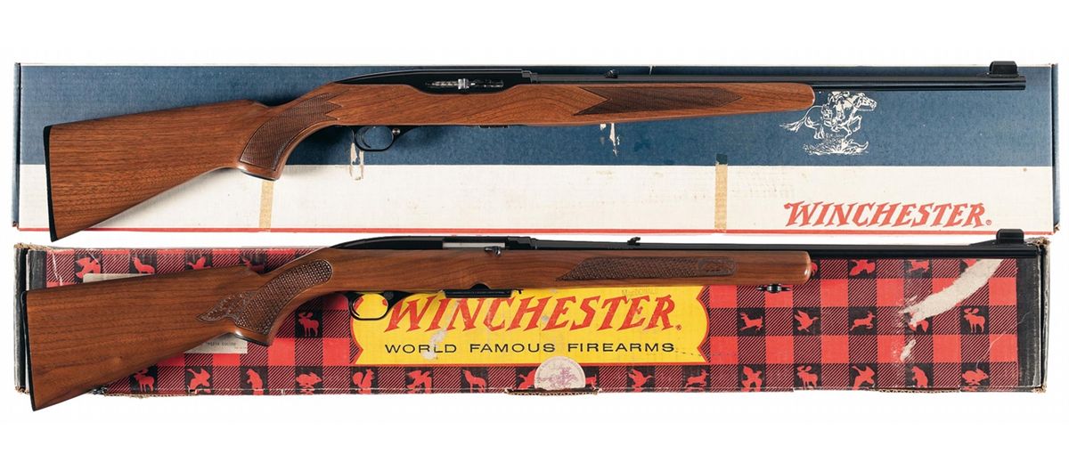 - B) Manufactured in 1970. This rifle has a hooded ramp front sight and a folding rear sight. Drilled and tapped for scope mount or receiver sight. Mounted on a basket weave and acorn leaf checkered walnut stock with sling swivels and a plastic buttplate. With box numbered to gun.