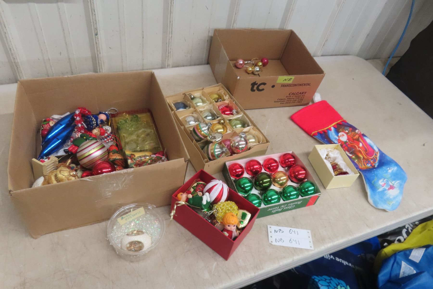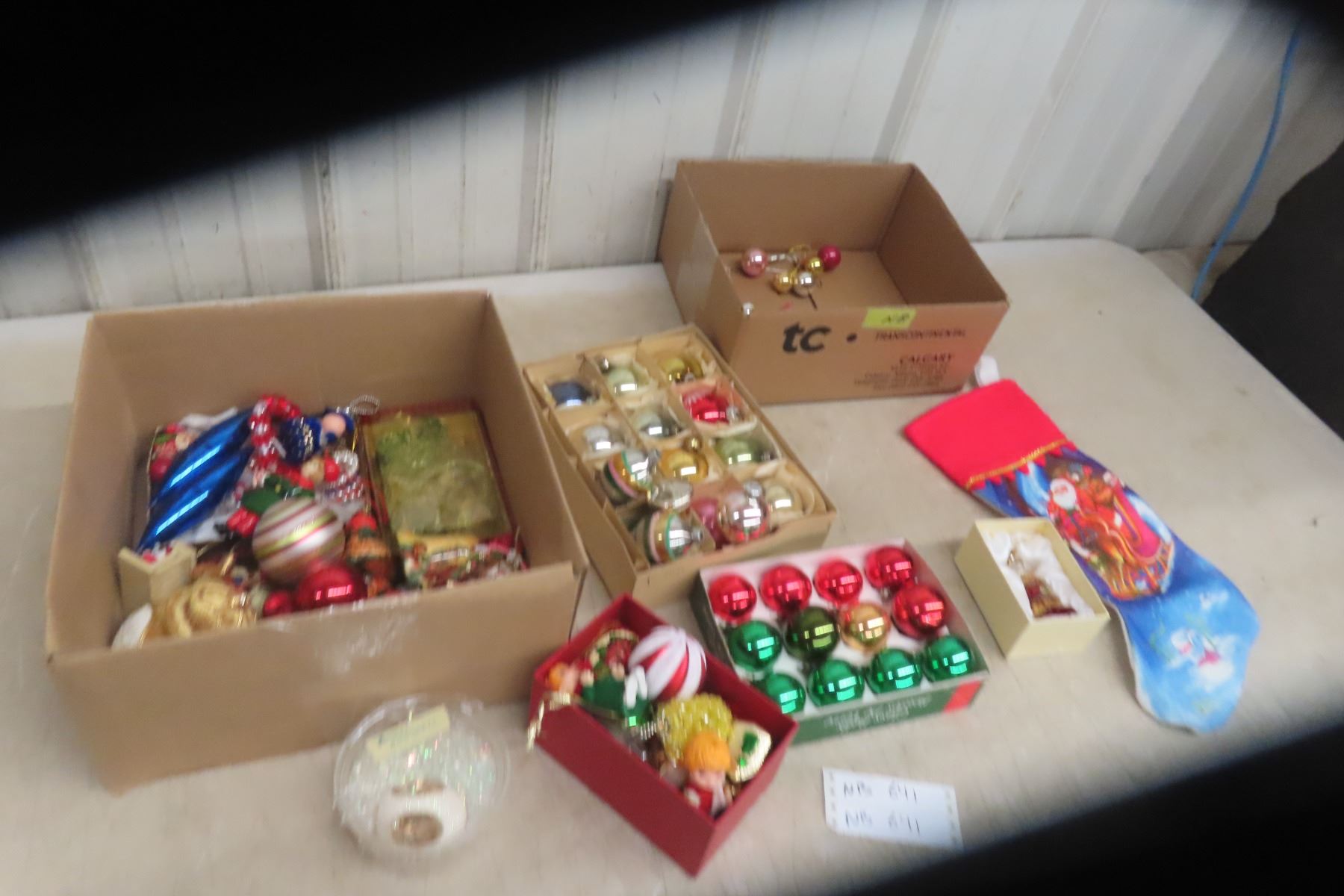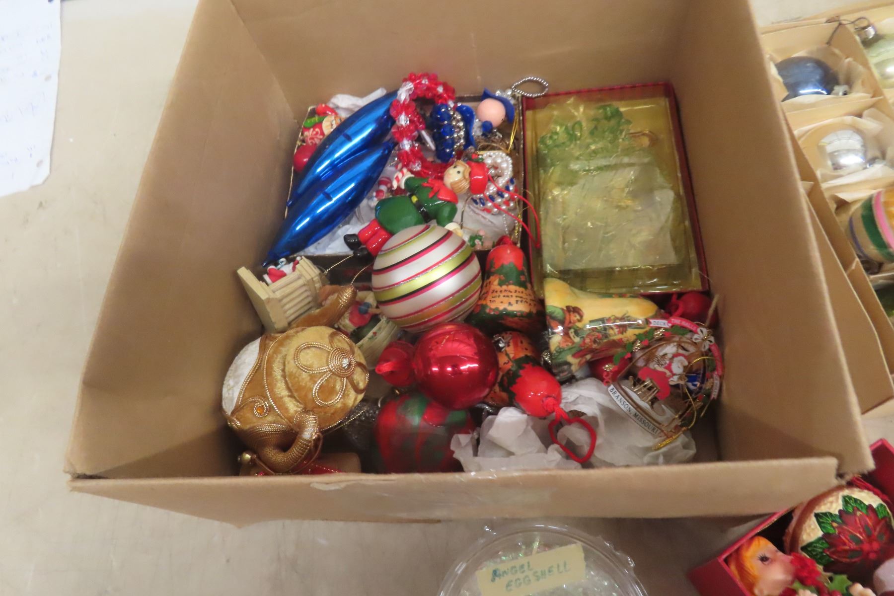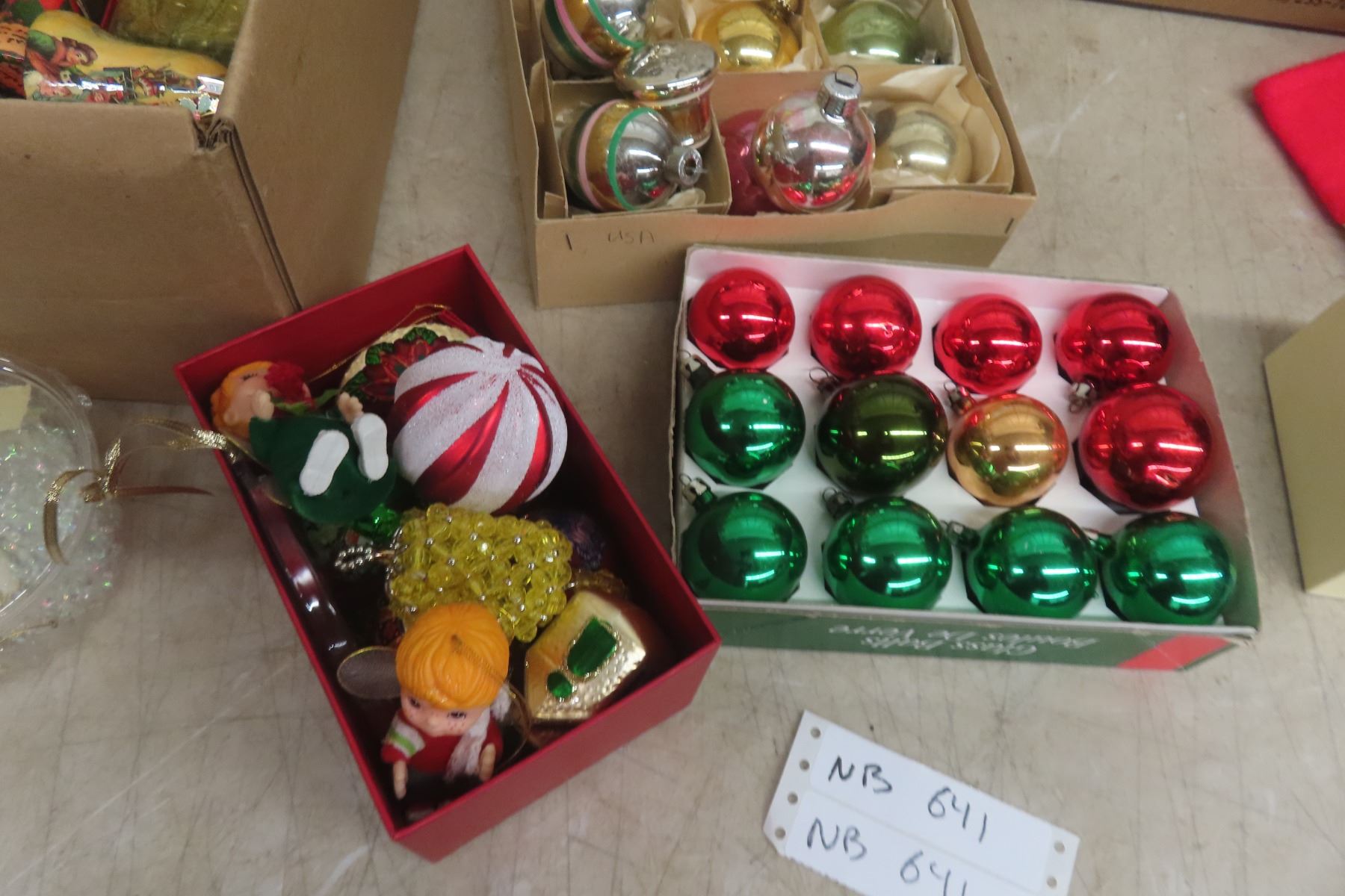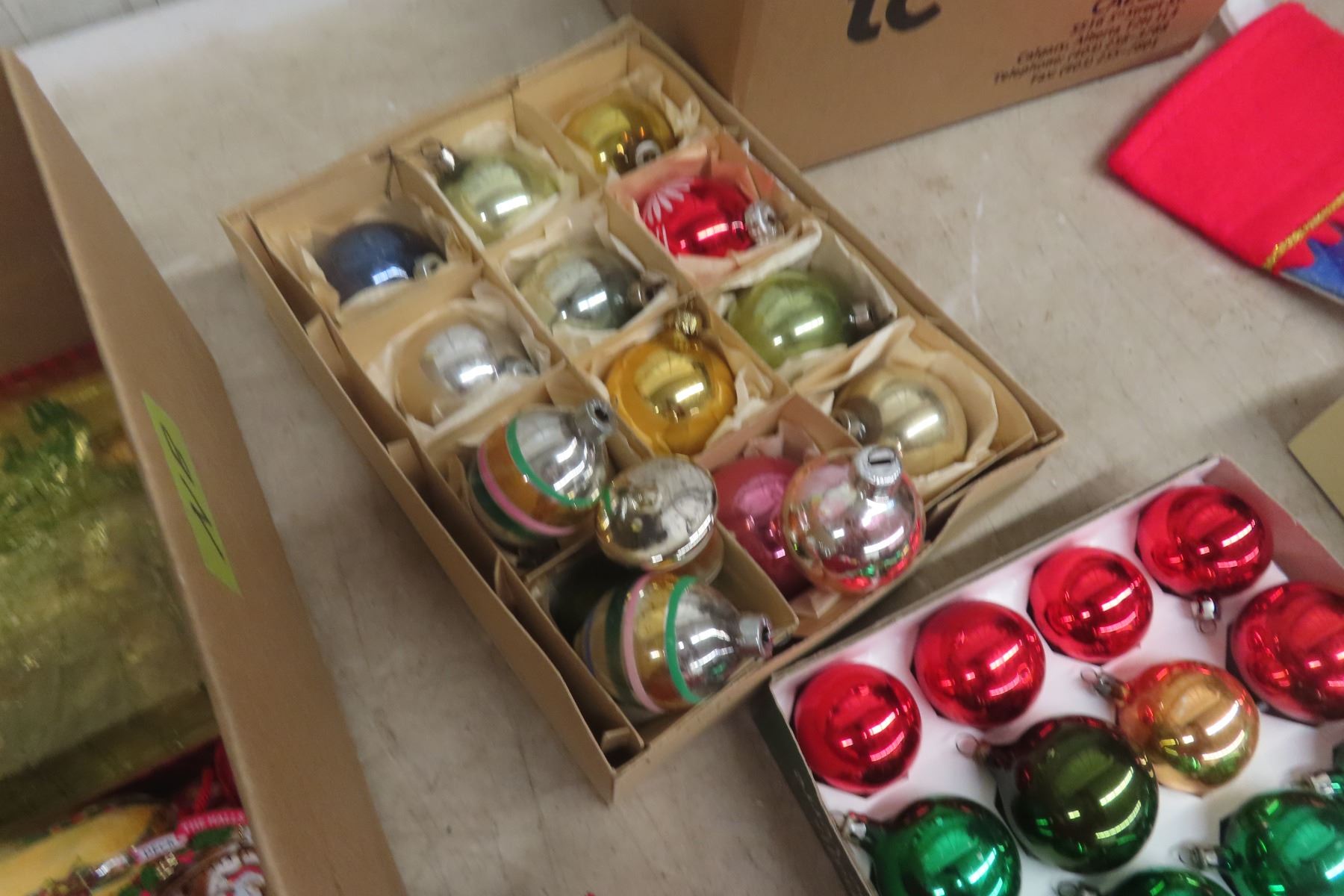 Two Boxes of Christmas Ornaments and Decorations