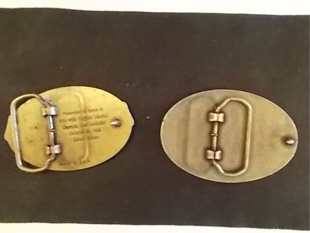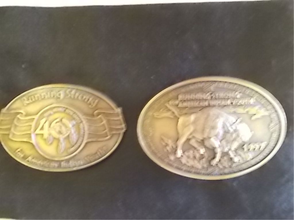 11ct – Two Brass Buckles for ‘Running Strong for American Indian Youth’ Both collectible buckles, one buckle 3 5/16” x 2 5/16” states, ‘Running Strong for American Indian Youth’ 1997, belt width 1 7/8”. The other 3 3/4” x 2 1/8”, belt width 2 15/16” states,’ ‘Running Strong for American Indian Youth’ , (40th) ‘Billy Mills’ 10k Gold Medal Anniversary on the front and on the reverse, Made in the honor of Billy Mills (Oglala Lakota) Olympic Gold Medalist October 14, 1964 Tokyo, Japan. From the collection of Good Time Charlie Cartwright, legendary tattoo artist famous for black and grey tattoo artistry. Charlie admired the American Indian and collected the image of American Indians and Western hero’s for 40 years. The collection has more ‘Indian Kitsch’ than ‘Route 66’ in the 1950’s. See Charlie in the soon to be released movie, ‘Tattoo Nation’. All measurements are approx.
