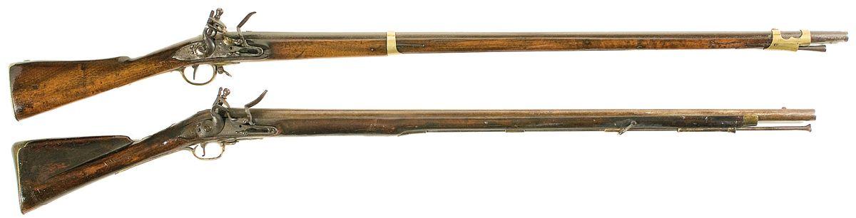 A) Two brass barrel bands. Lock is marked "WHATELY" in front of the hammer. Brown Bess pattern, possibly pre-War of 1812. Stock is cracked behind the upper barrel band and a small crack behind the upper tang.