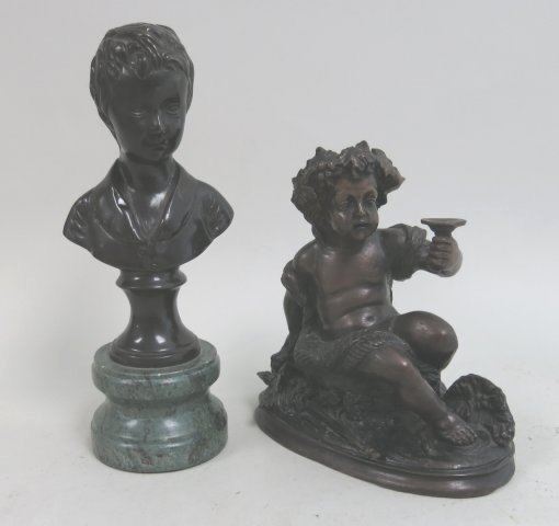 Cupid approx. 8" H x 7 1/2" W. Boy approx. 10 3/4" H.