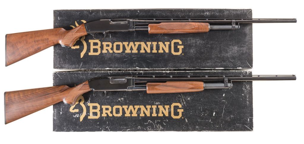 Two Browning Slide Action Shotguns with Boxes -A) Browning Model 42 Grade I Shotgun