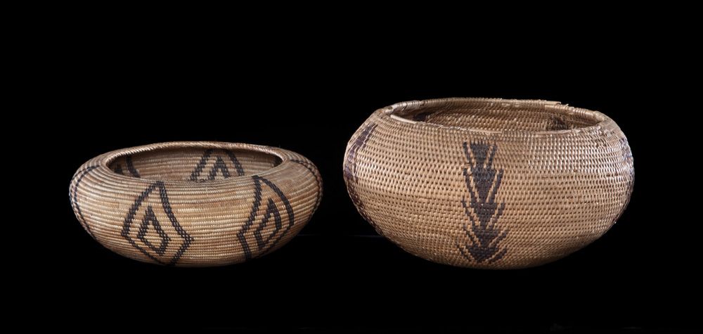 a) 4” x 7” Northern California, geometric designs. Good condition with some rim damage, circa 1940s;