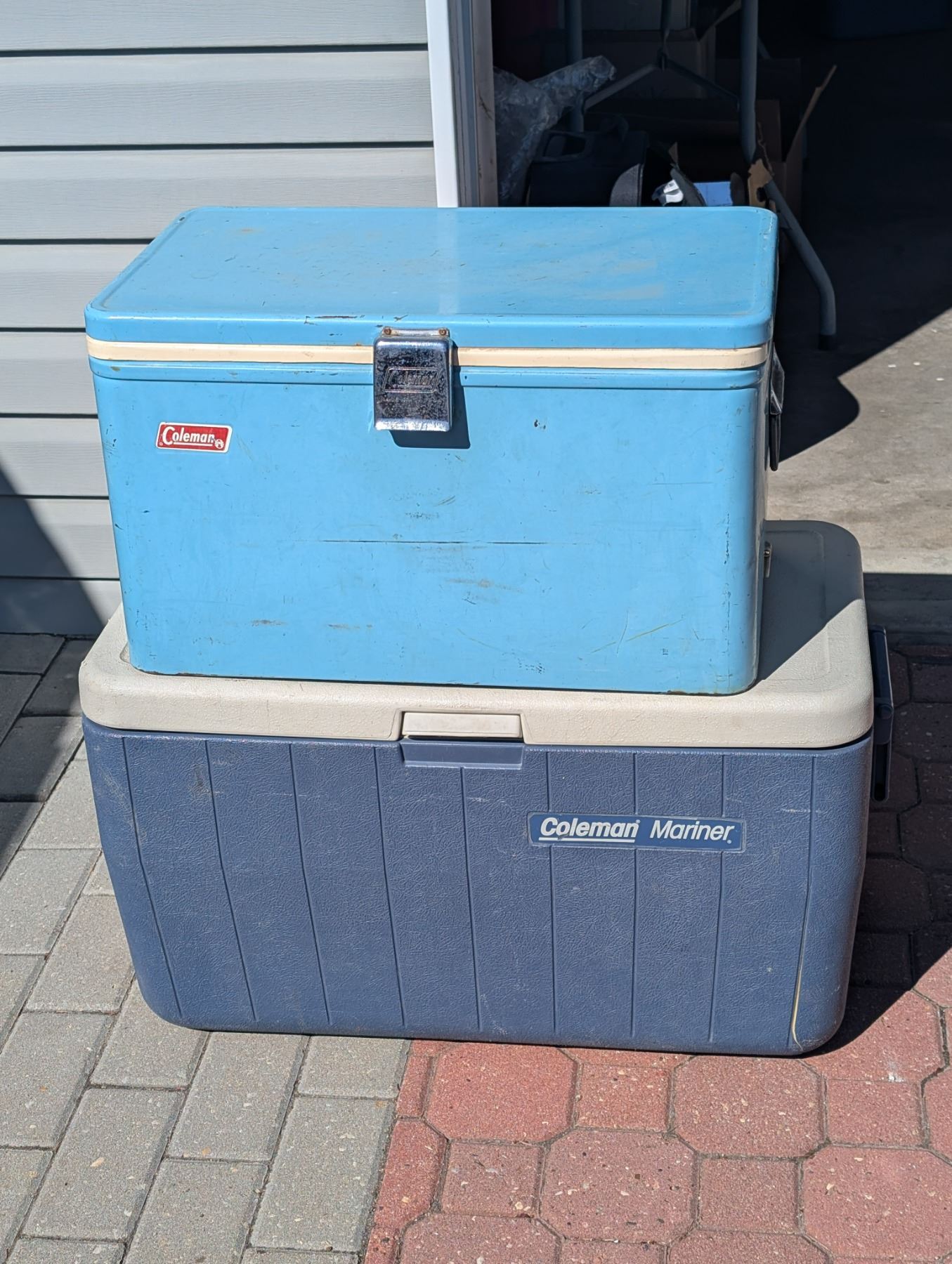Two Camping Coolers Coleman Mariner and Coleman Vintage
