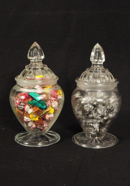 Two Candy Jars, Each Measures 11" Tall, Although They Appear Identical, One is Slightly larger In Circumference Than the Other