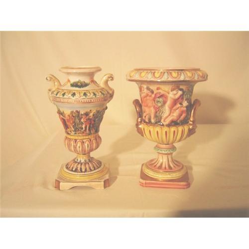 Two beautiful decotaviv vases made by Capo Di Monte with Putties,playing by a summer day outside