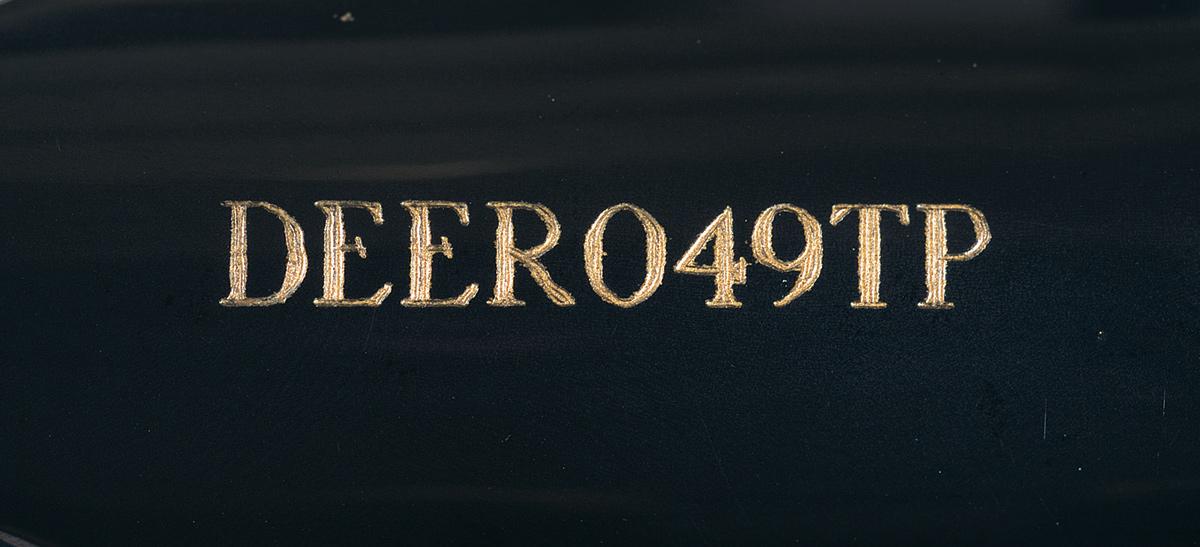 A) Standard markings and features. Numbered 049. With hanging tag. In fitted case with "B".