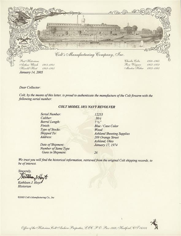 B) This revolver is similar to the "A" gun. The factory letter states that this revolver left the factory as "Blue / Case Color", that the type of stocks were "Wood" and that it was shipped to Ashland Shooting Supplies on January 17th, 1974.