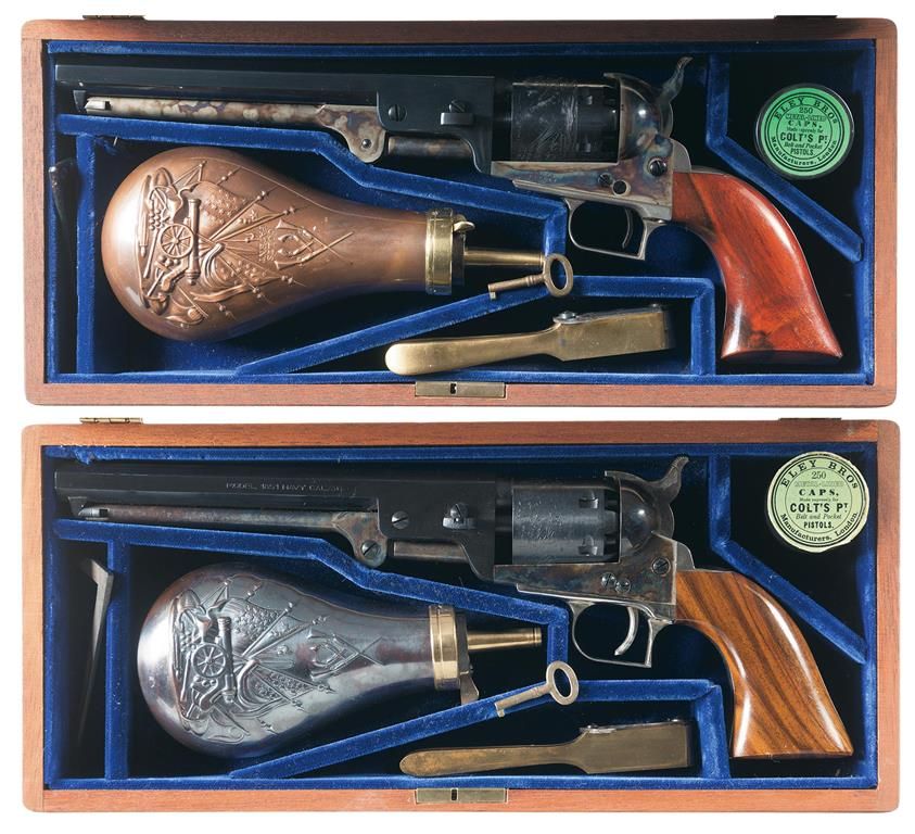 Two Cased Reproduction Model 1851 Navy Percussion Revolvers with Accessories -A) Early Colt Black Powder Series 1851 Navy Revolver with Original Black Box