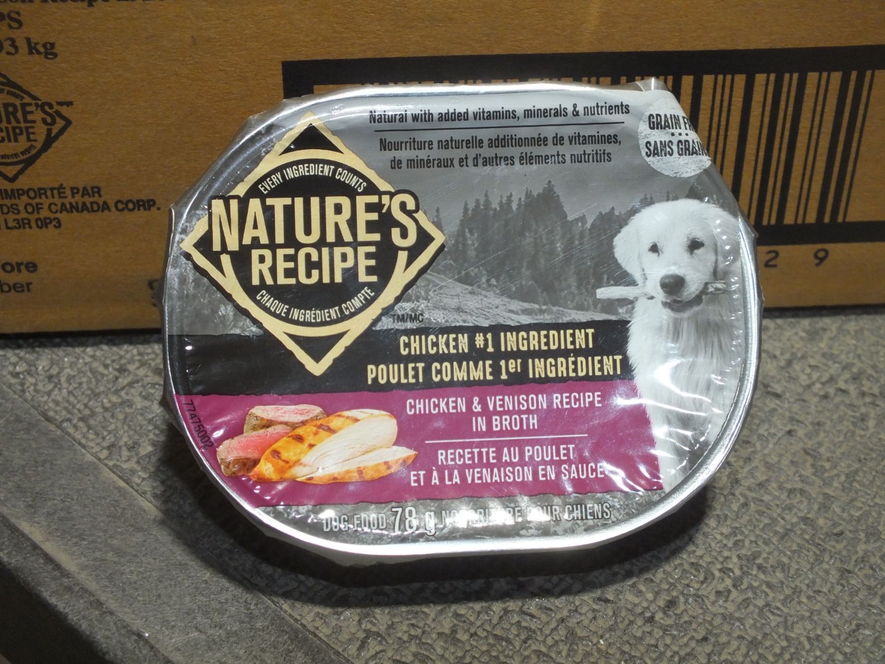 Two Cases Of Natures Recipe Chicken & Venison Dog Food, you get 12 78g tins per case, Best before May 3/25...new...sold as is / where is