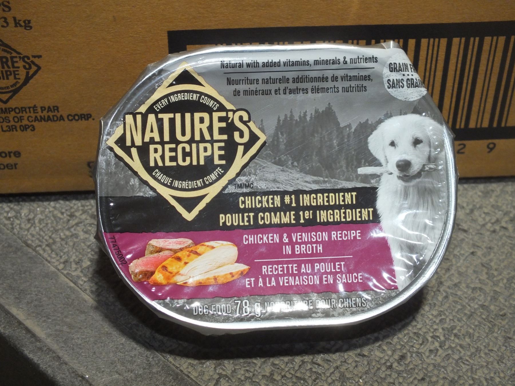 Two Cases Of Natures Recipe Chicken & Venison Dog Food, you get 12 78g tins per case, Best before May 3/25...new...sold as is / where is
