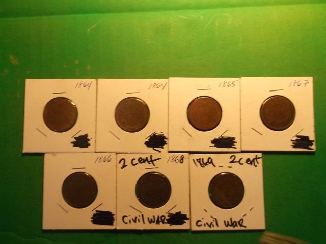 Two Cent Pieces 2- 1864, 1865, 1866, 1867, 1868, 1869