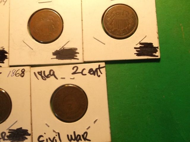 Two Cent Pieces 2- 1864, 1865, 1866, 1867, 1868, 1869