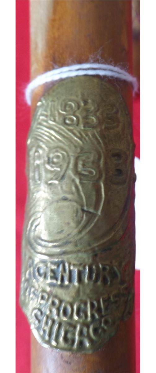 Two Chicago Centennial Canes - Representing 1833-1933 - Canes are dated 1933. They are made from Wood with a Brass Plate. These are collector pieces and both are 34x1 and 35x1 inches. Condition is good. Shipping $20
