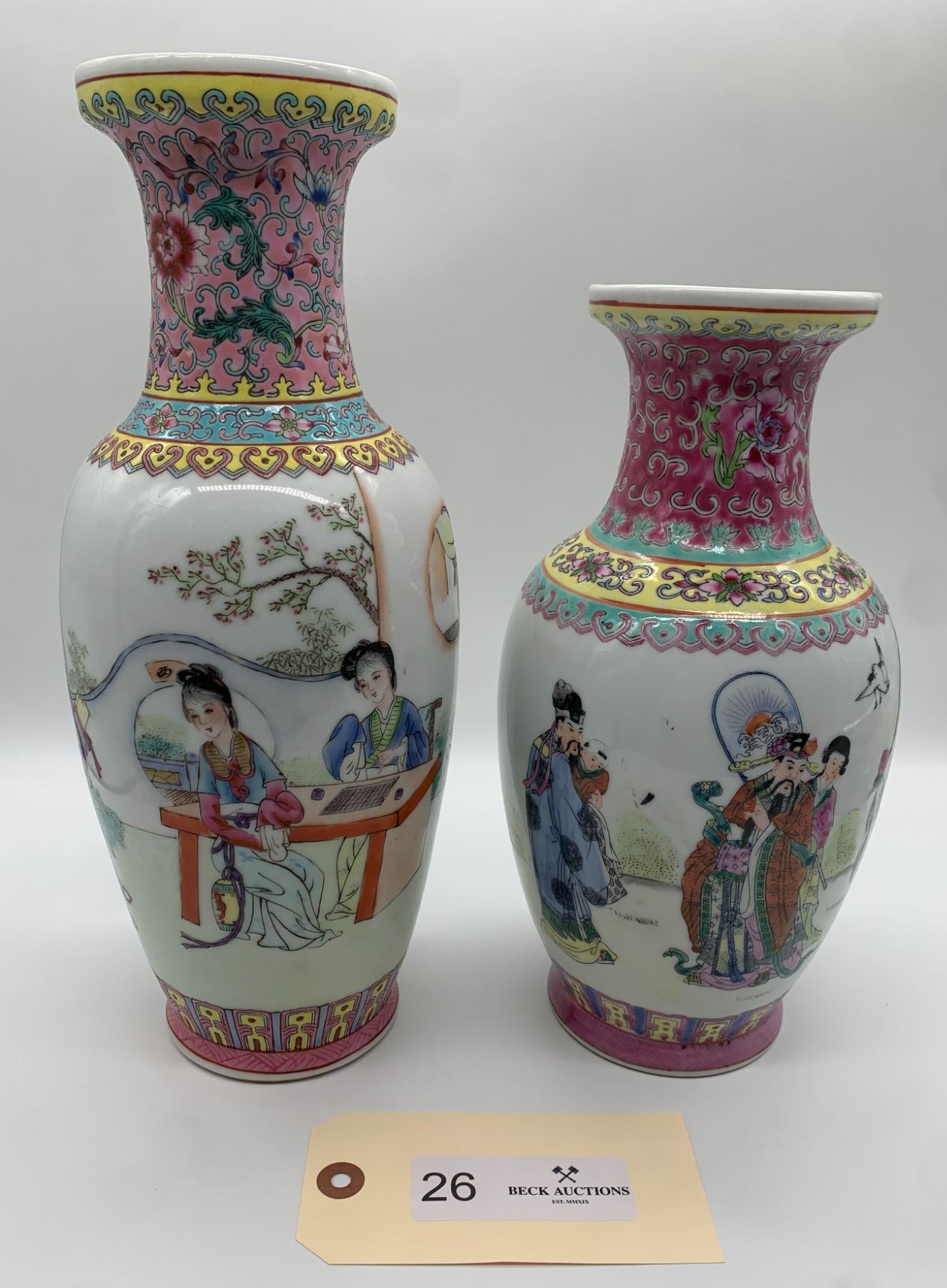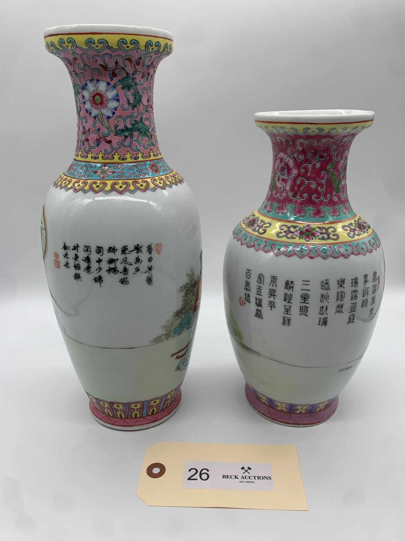 Two Chinese Femille Rose Vases From The Twentieth Century 12" Inches Tallest Piece