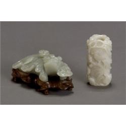 Two Chinese Jade Carvings, 19th Century, The first, a pale celadon chimera-form taper stick h...