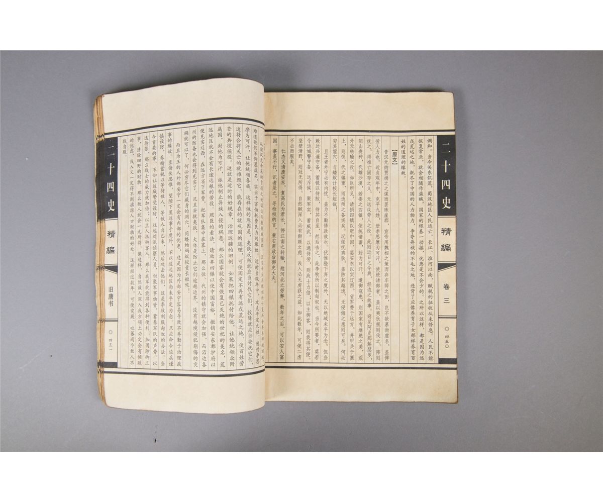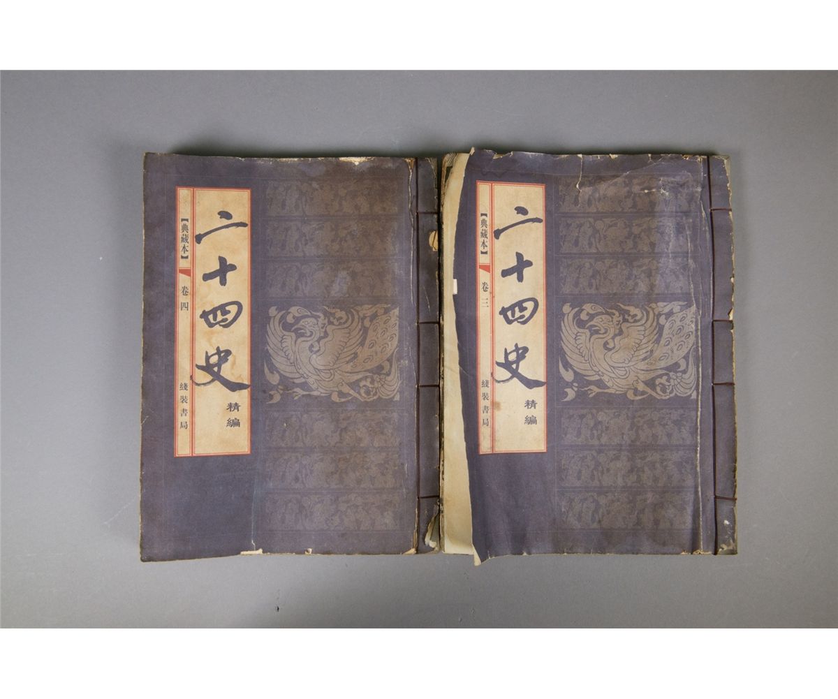 Two of Chinese old books; featuring Twenty-four histories which is Chinese official historical books covering a period from 3000 BC to the Ming dynasty in the 17th century; 28 cm x 21 cm both