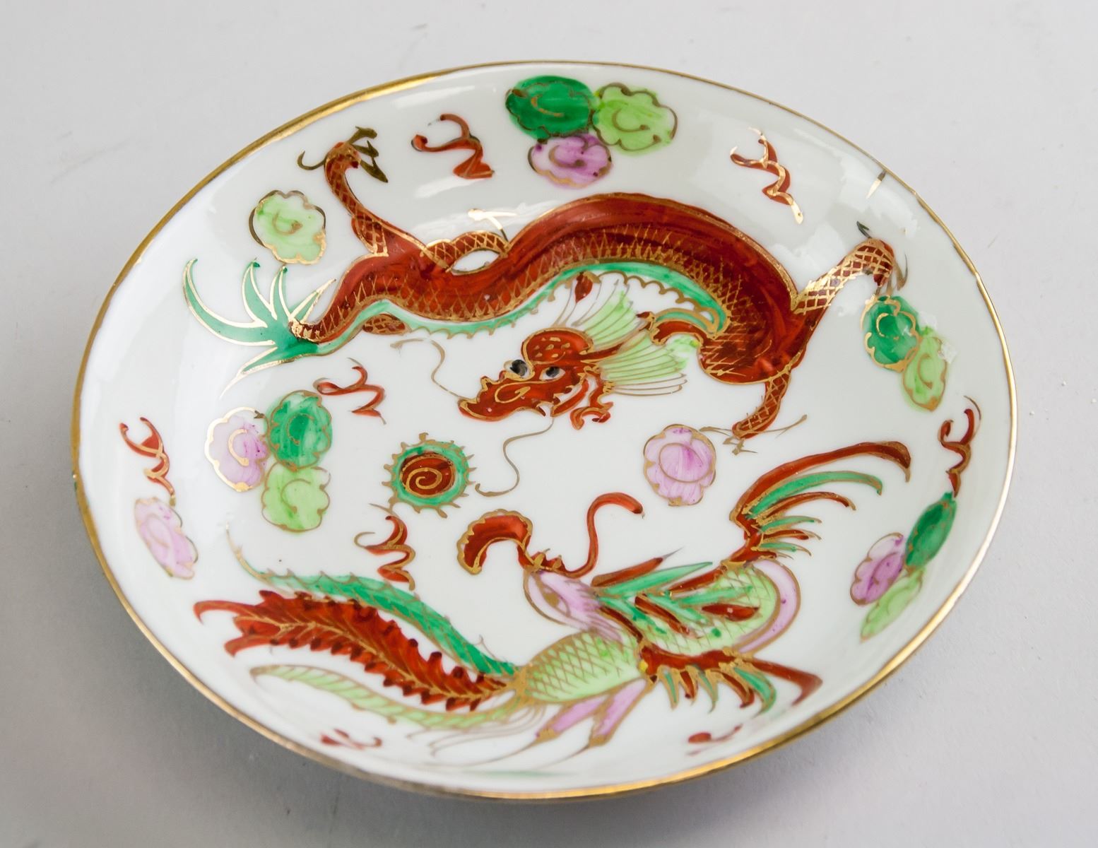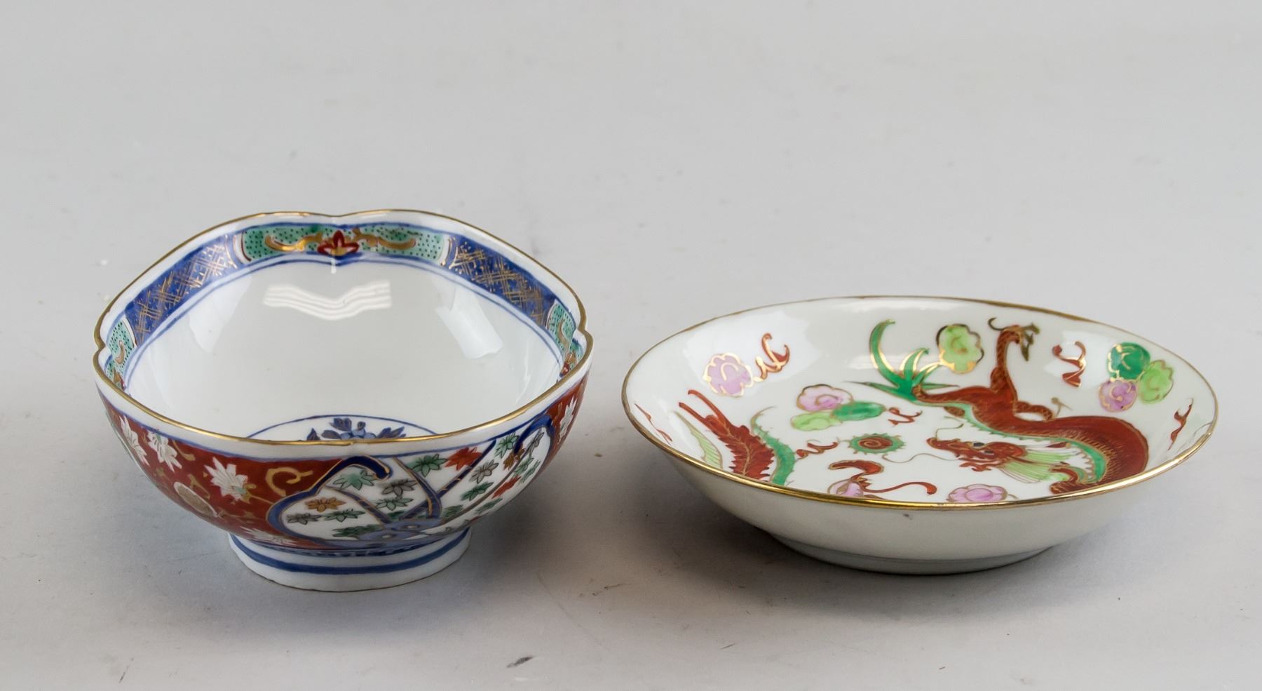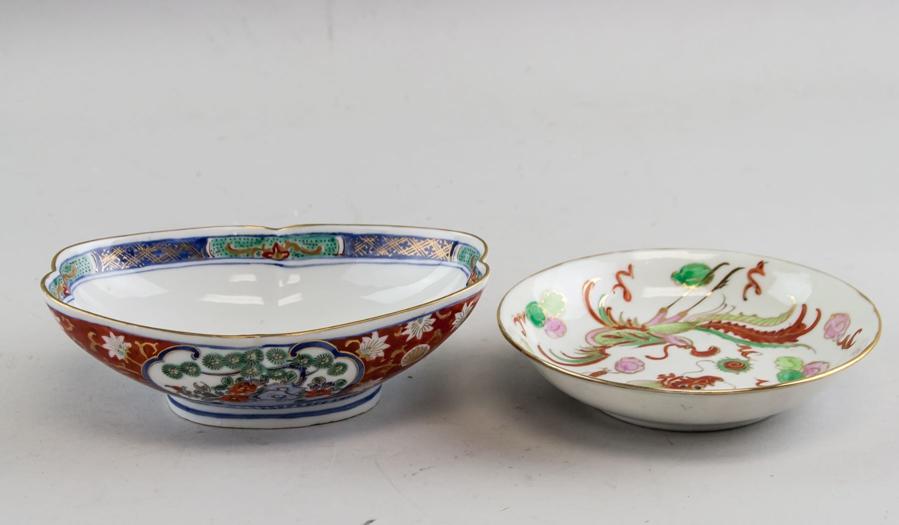 One is white tone outside featuring images of a dragon and phoenix inside. Four-character Qing dynasty Guangxu mark, and CHINA mark on base.