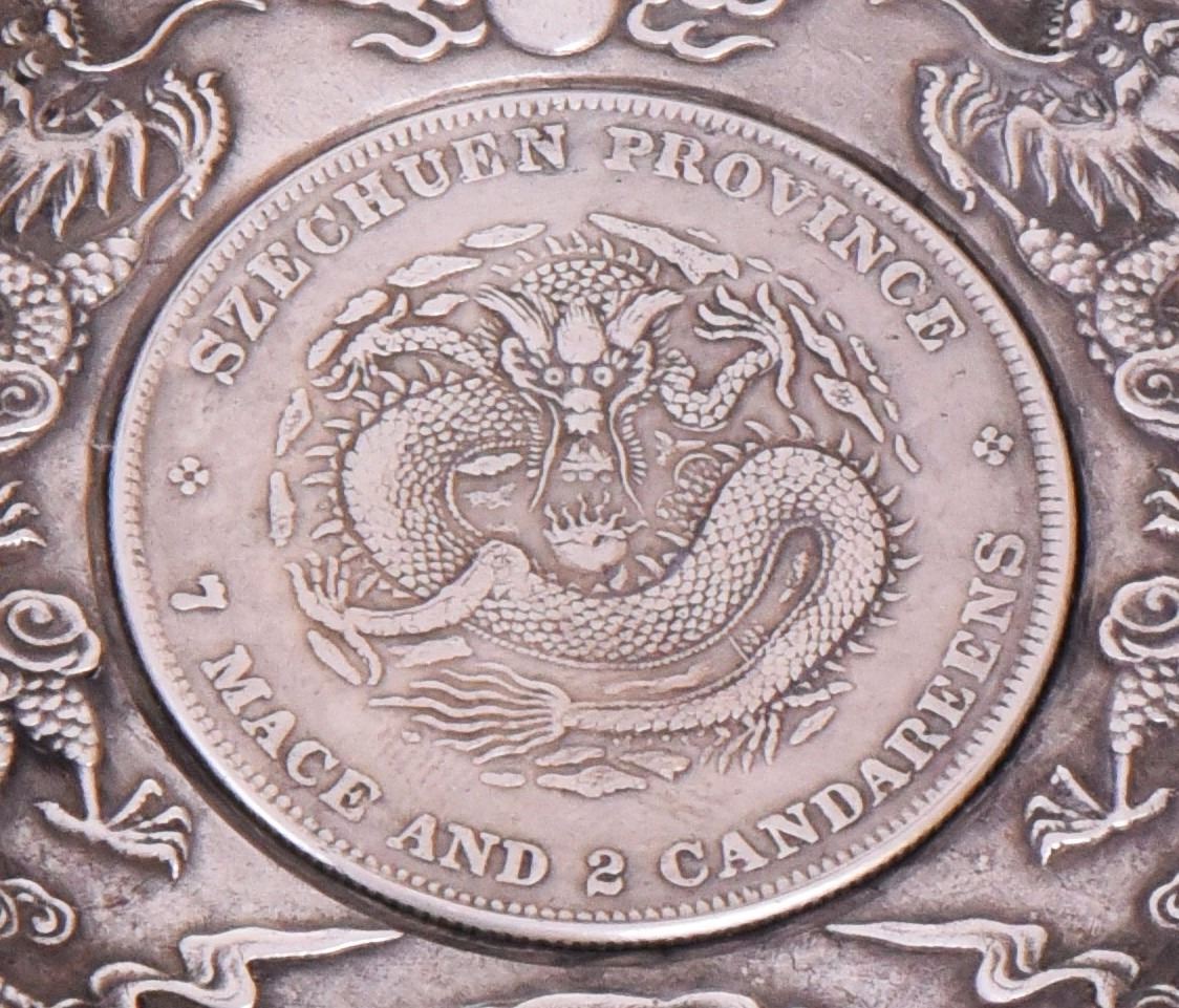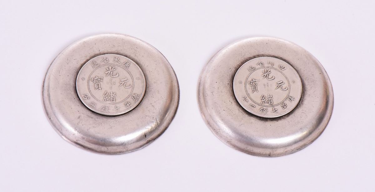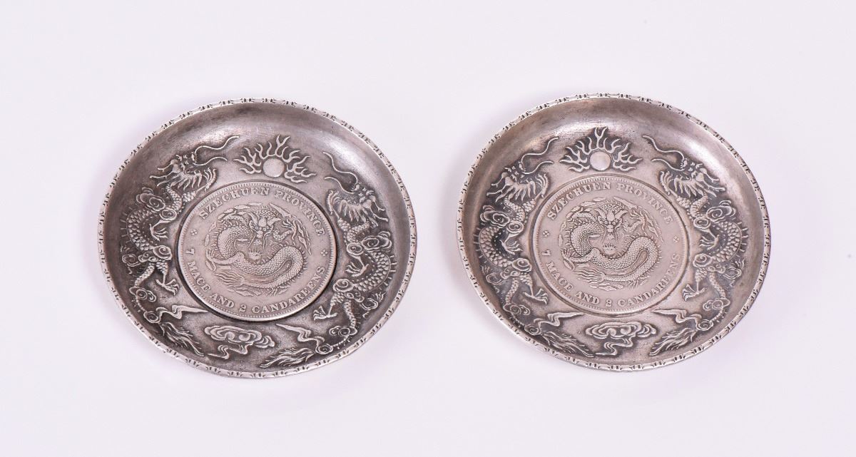 Two Chinese Republic Silver Pin Dish With A Xuan Tong Yuan Bao Coin Center Bearing The Szechuan Province And 7 Mace And 2 Candareens Markings. Estimated more than 50 yrs old. Silver approximately consisting of 90% silver content. Tested Positive: Nitric Acid Chemical Scratch Test, Cloth Rub Test, Smell Test, Magnet Test. Markings: None. The reason silver needs to be combined with other metals is that it is very difficult to make great designs with just pure silver, which is very soft and malleable. A bit of hardness has to be introduced, by adding other metals such as copper. Mexico is the leading producer of silver, followed by the United States, Canada, Australia, Spain, Peru, and Russia. Silver can be found in nature in silver ore, silver ore is a mixture of other metals including silver. Many countries do not require that precious metal items be stamped. Size: See Ruler Photo. (Photos Represent The Condition Of The Lot.)