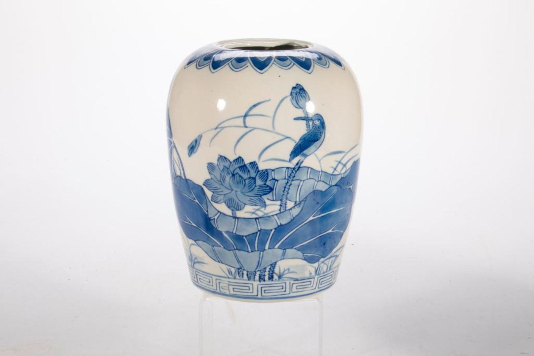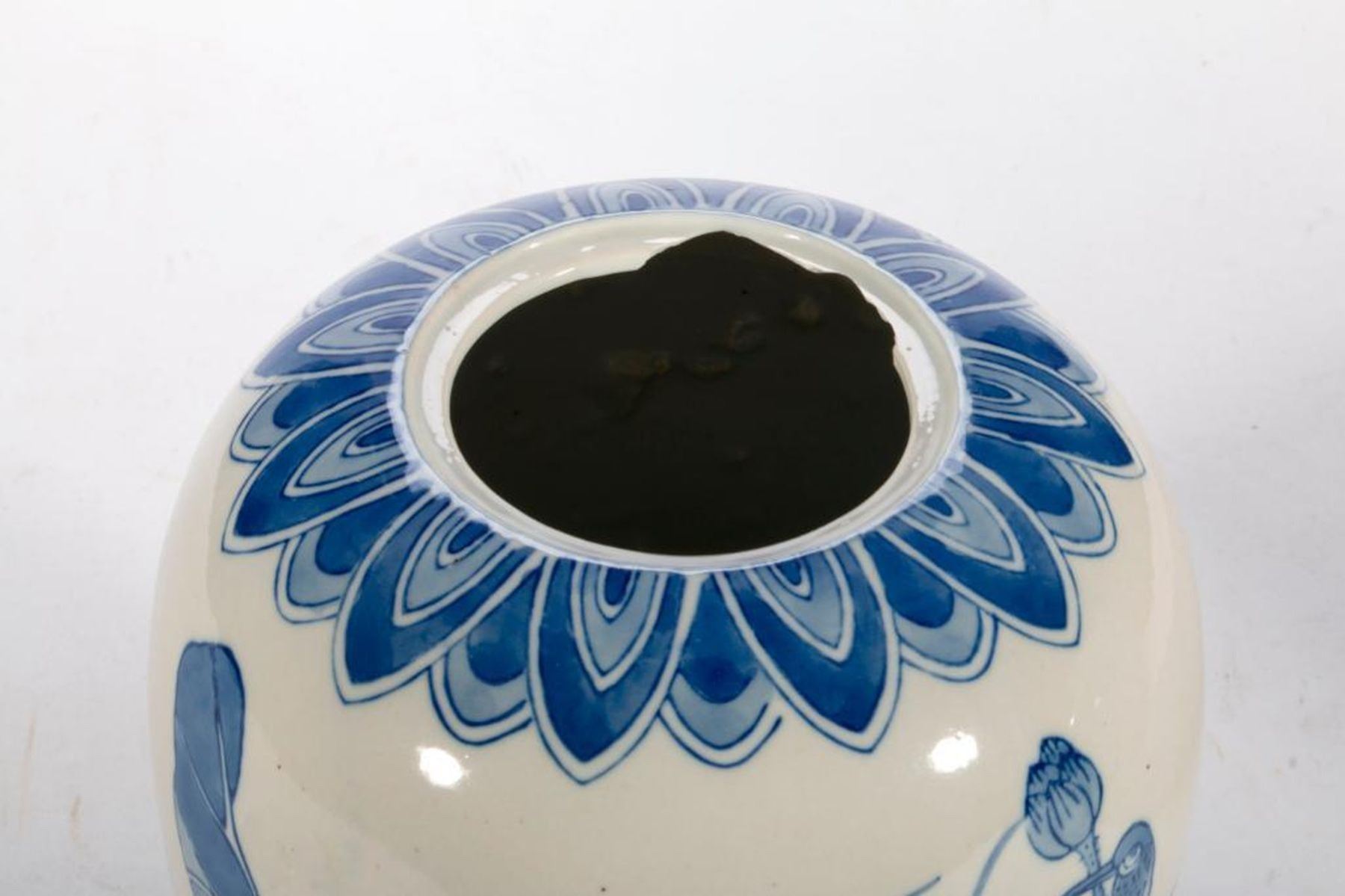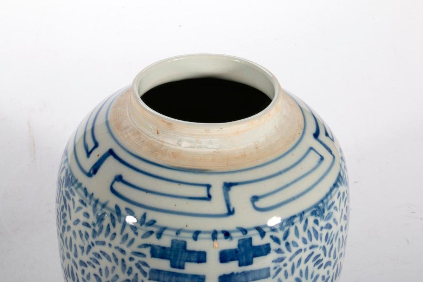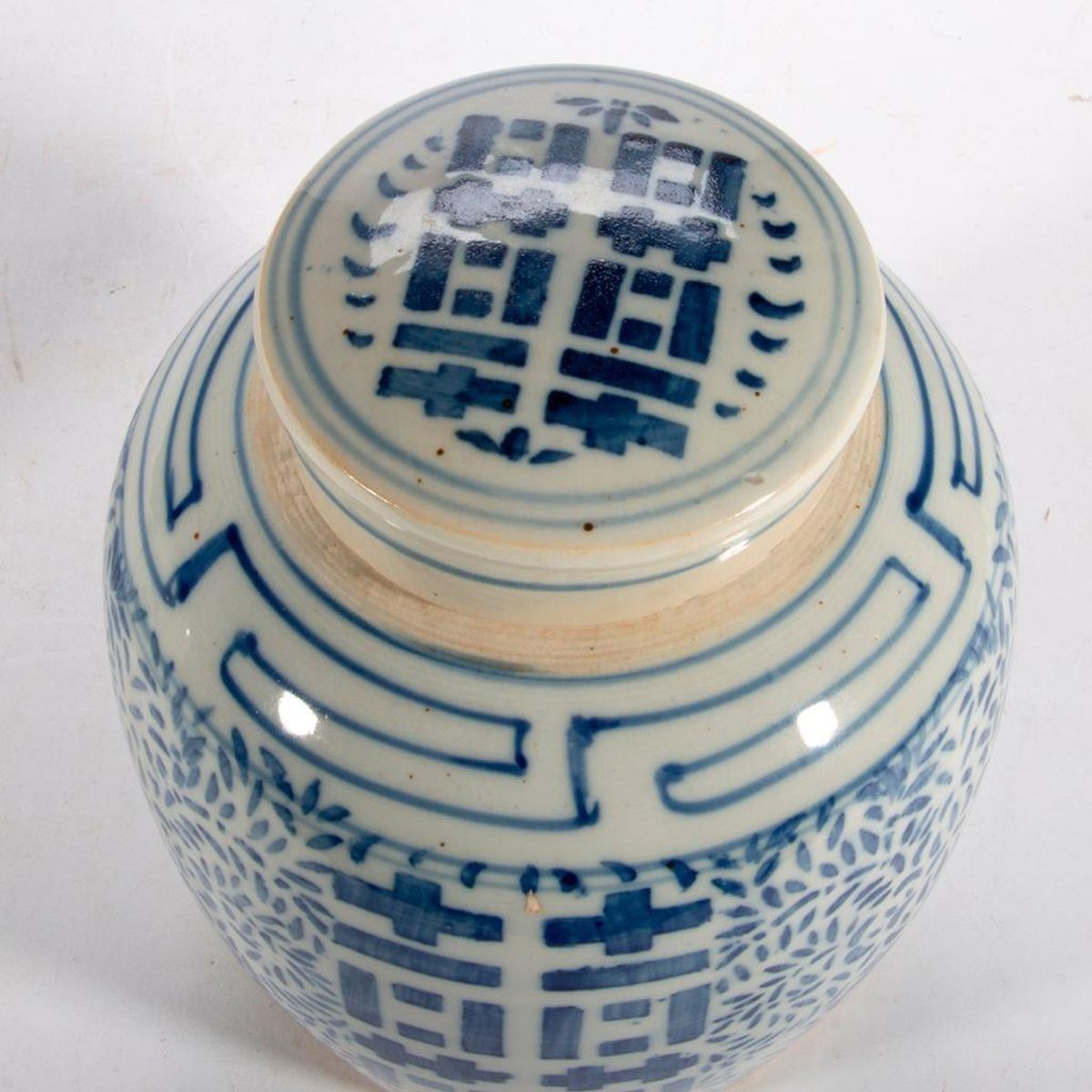 Two Chinese blue and white lidded jars, one late 19th/early 20th century measuring 1 1/2 inches high x 8 diameter and one 20th century measuring 10 1/2 inches high x 6 diameter (lid repair and rim damage).