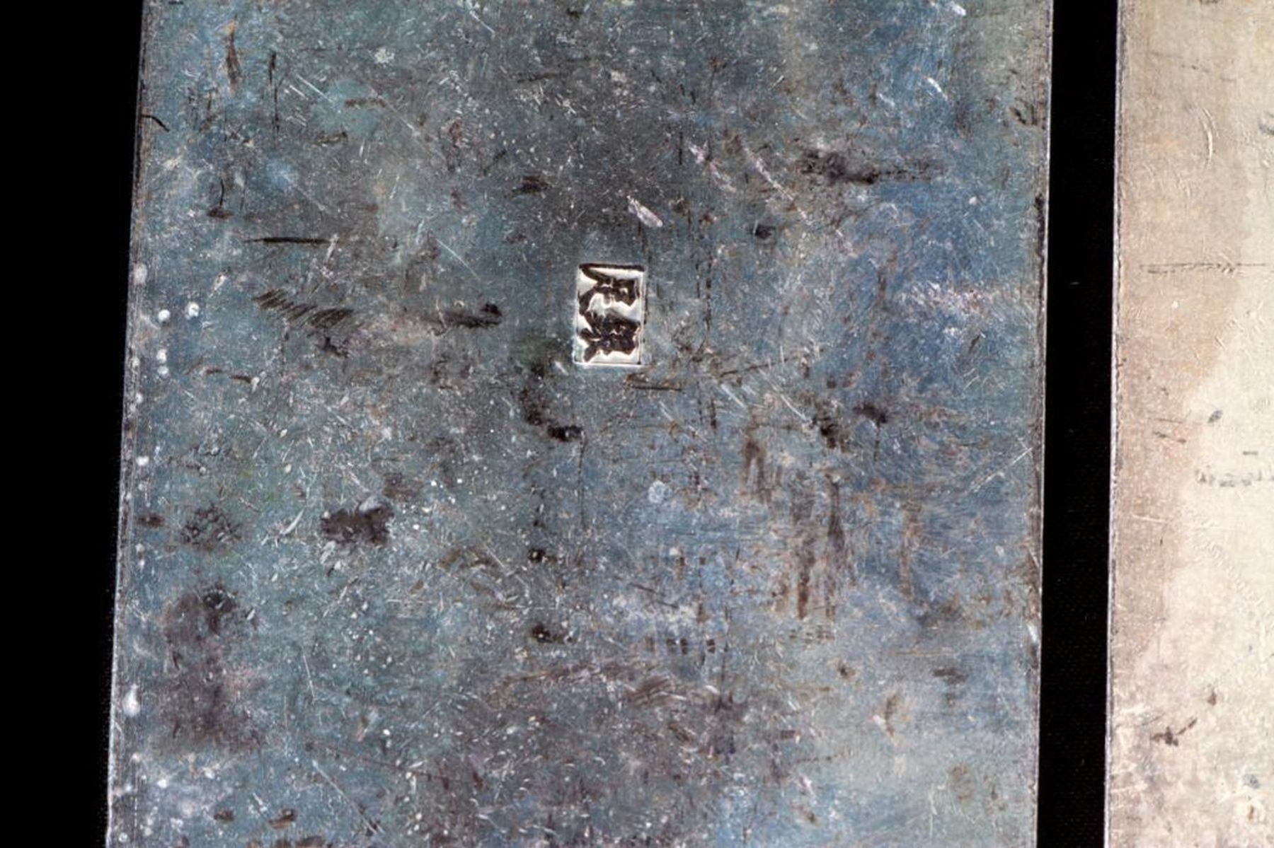 Two Chinese hallmarked embossed Tibetan silver bars, approx. 275 grams.